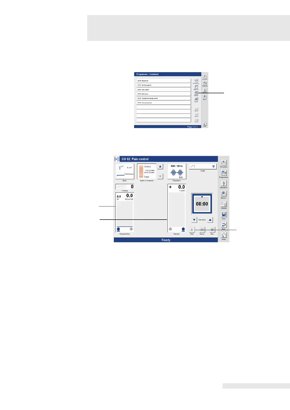Using the “Start” button, the “Programmes – Electrotherapy” window opens.