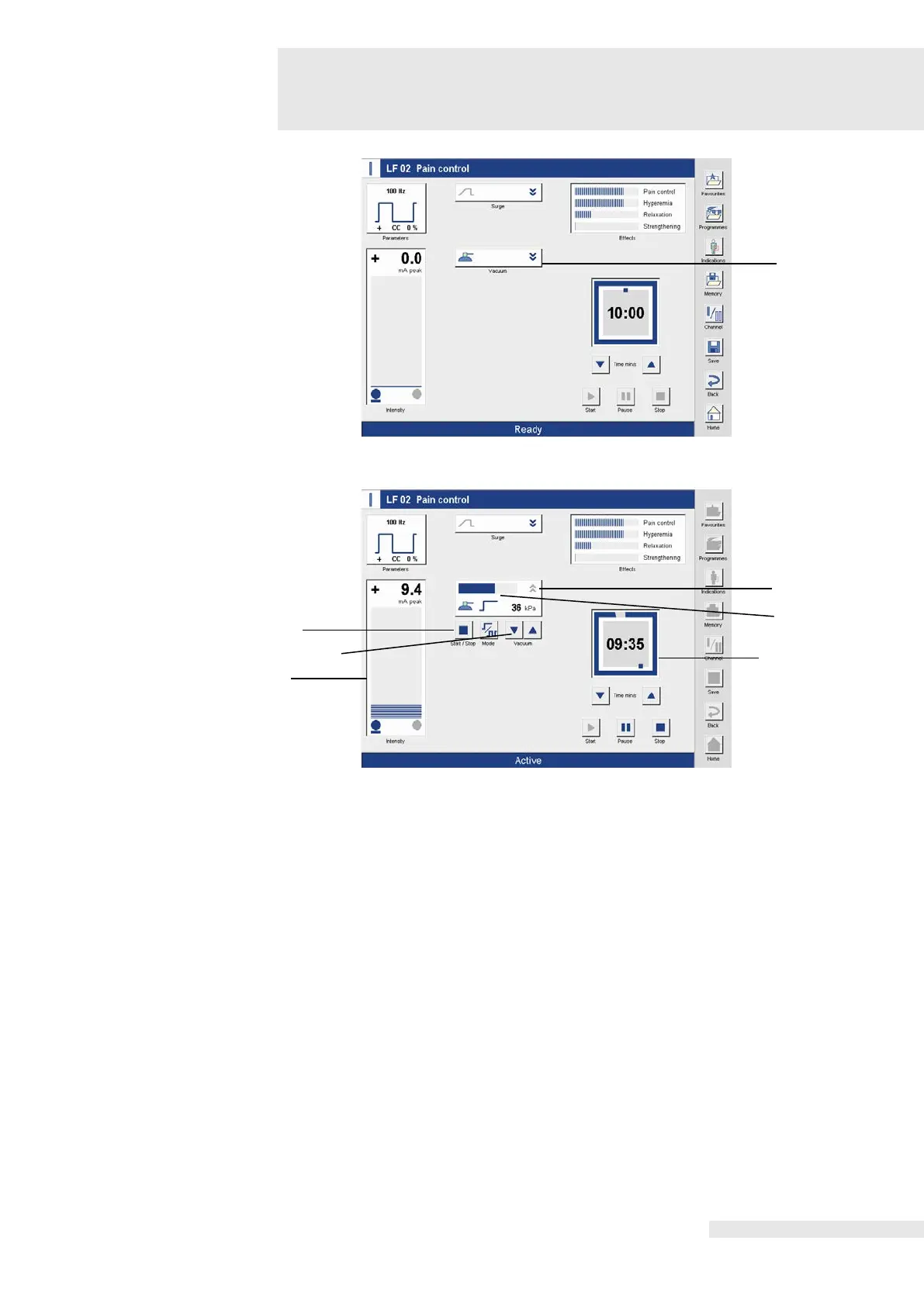 Using the “Start” button, the therapy time is reactivated after the end of therapy.