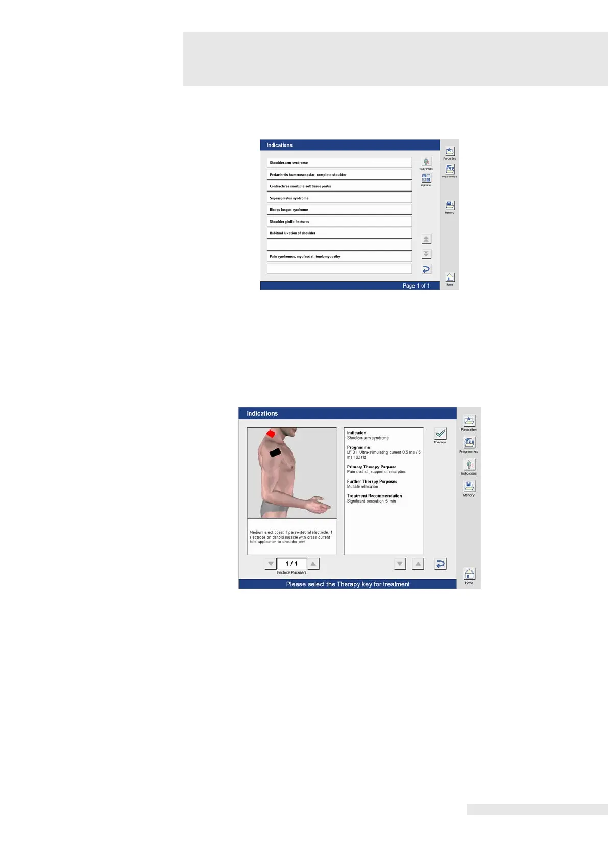 The desired clinical picture is selected directly in the corresponding line (here: Shoulder-arm