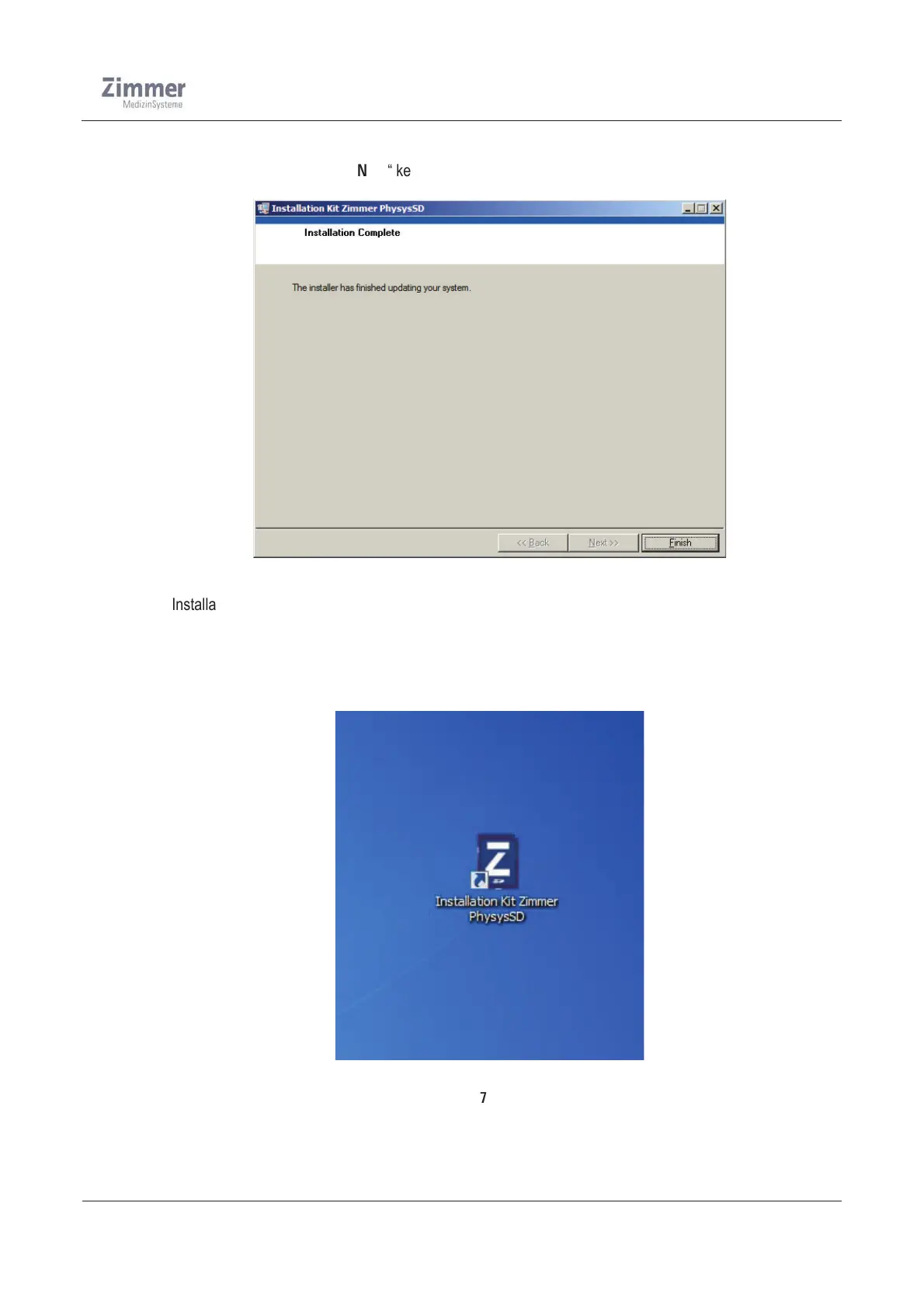 Close the installation by pressing „