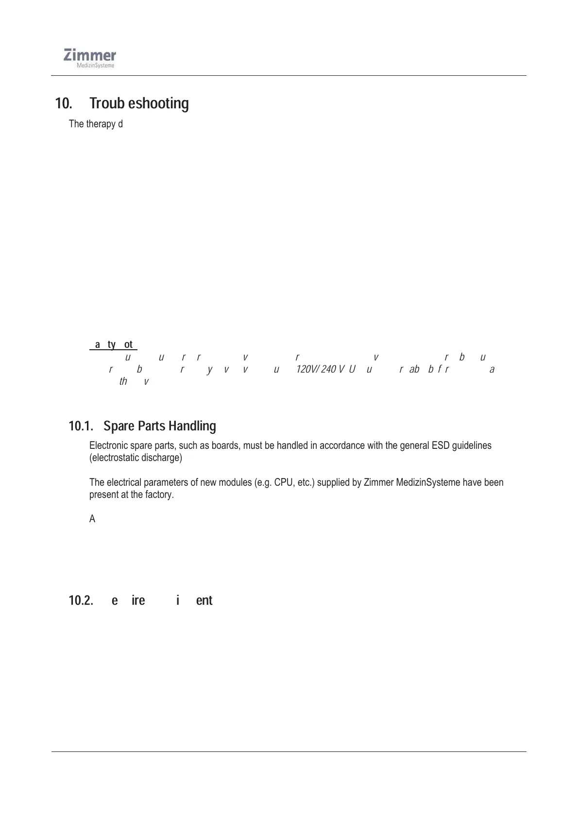 The electrical parameters of new modules (e.g. CPU, etc.) supplied by Zimmer MedizinSysteme have been
