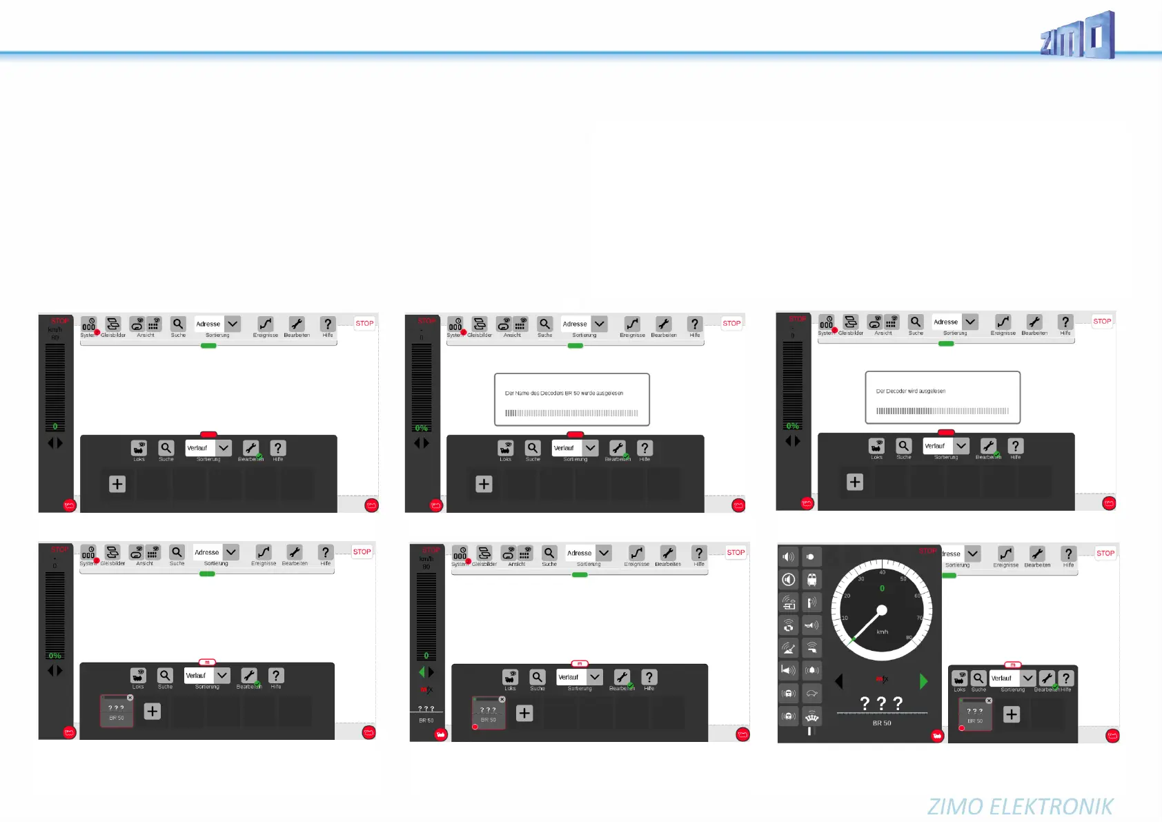 browser) and show the registration process of a ZIMO MS sound decoder. The decoder type does not