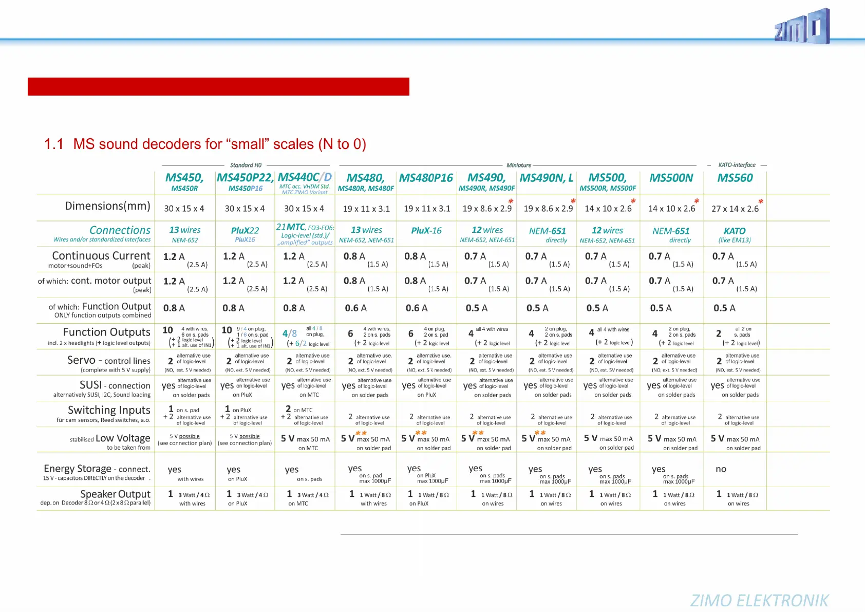 Page 4 MS - SOUND decoders MS440 to MS990 and MN - NON-SOUND decoders MN170 to MN340