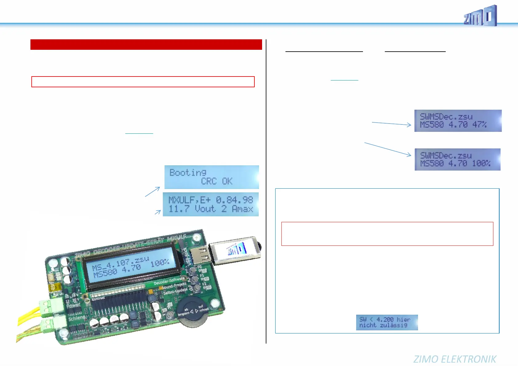 ➢ Download new MXULF software from www.zimo.at – Update & Sound – Decoder-Update-De-