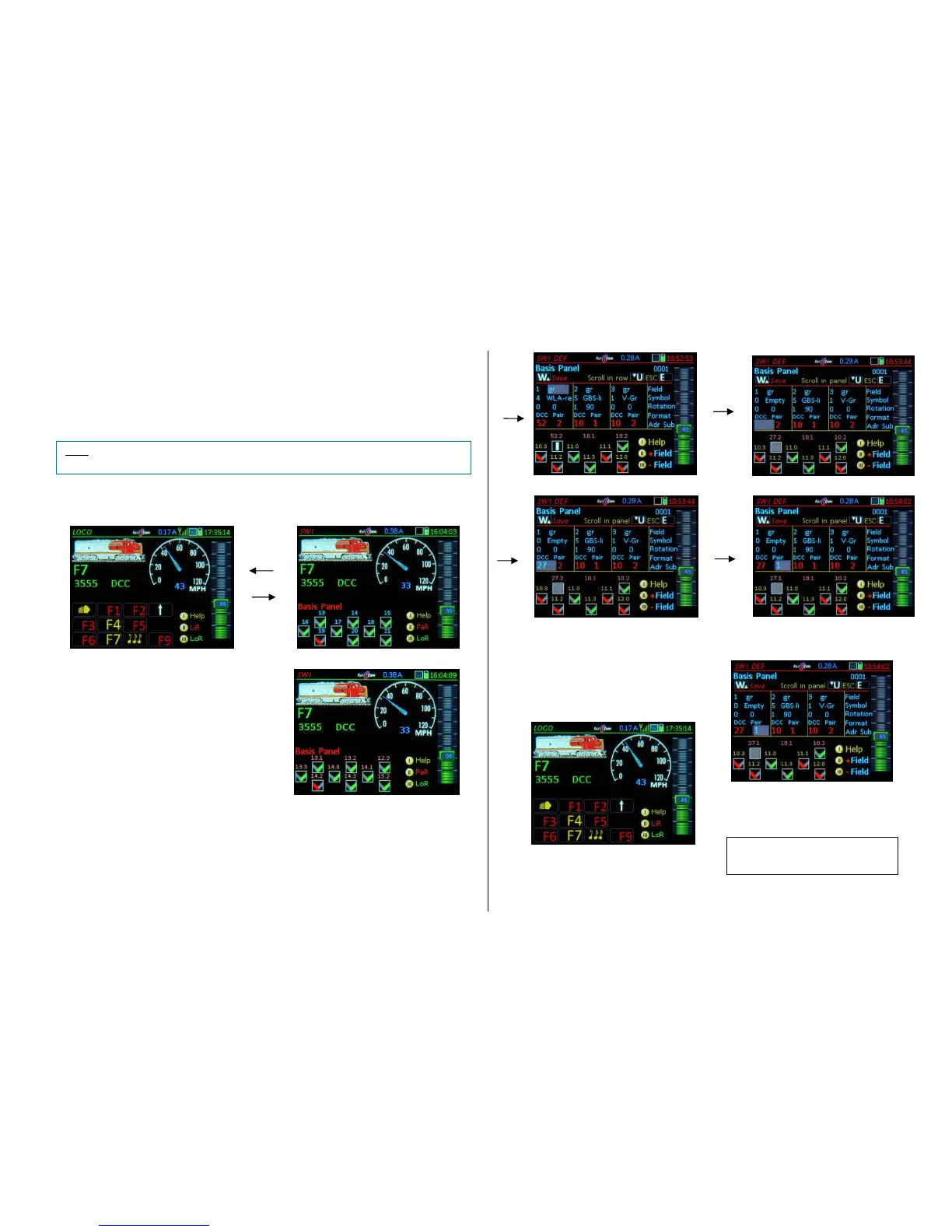W- Key (from LOCO mode) Operating mode SWI: the lower display half shows a “Basis Panel”