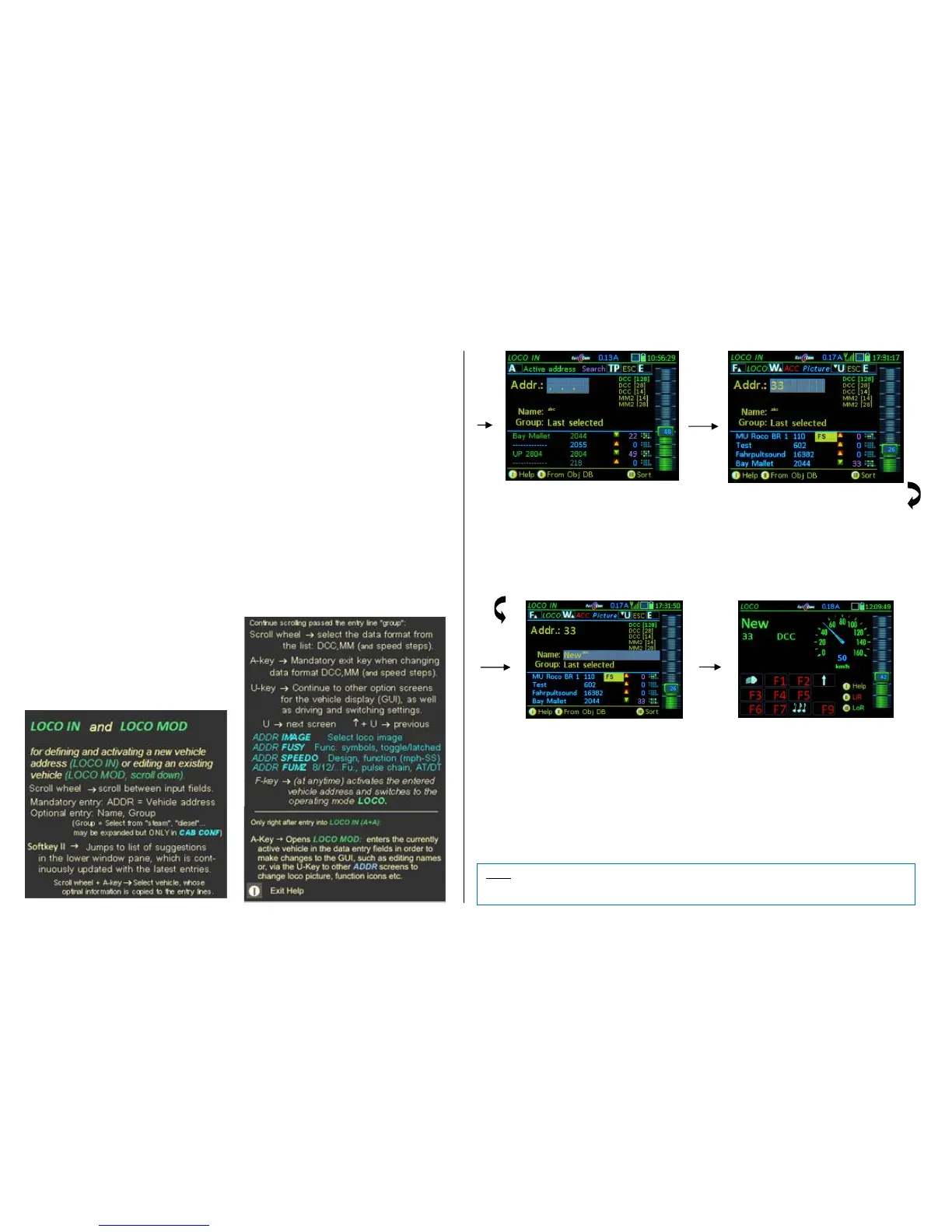 F-Key activates the vehicle address and switches over to the LOCO (Driving) mode. The activation