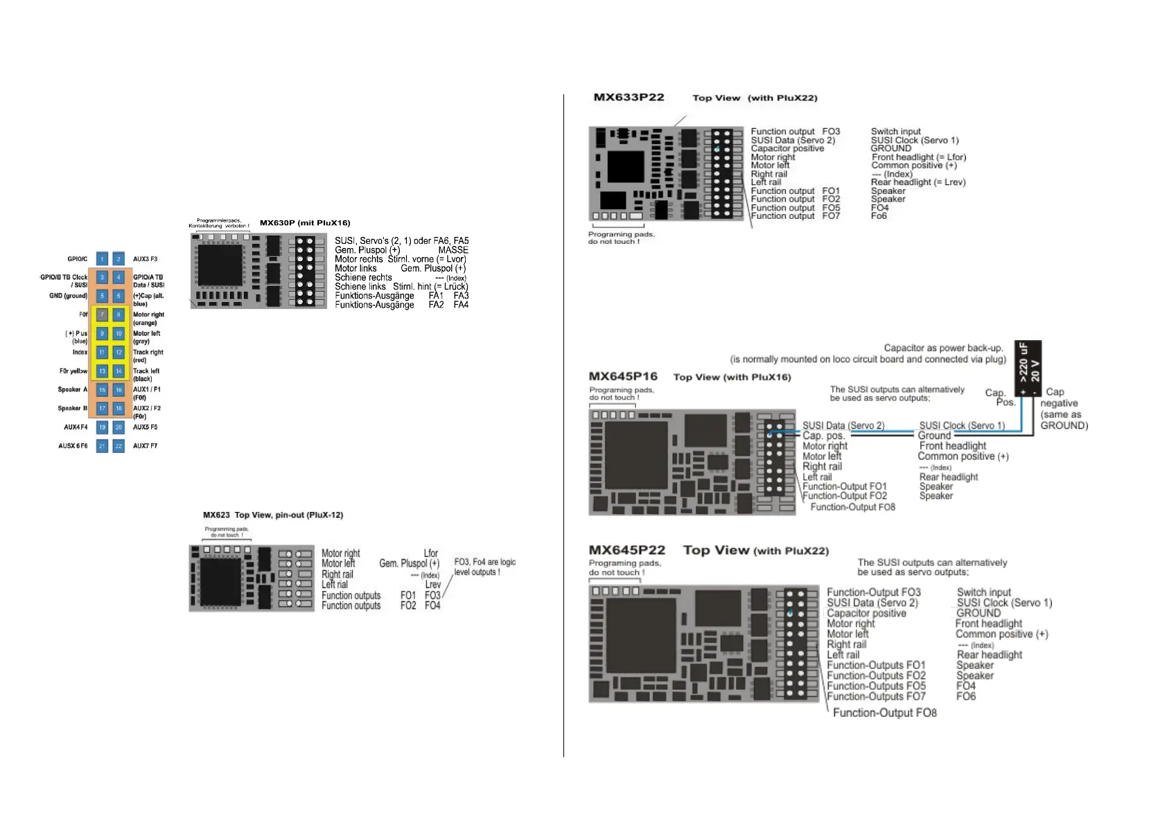 The sound decoders MX643 was and the MX645 is available with either 16 or 22-pin “PluX” connect-