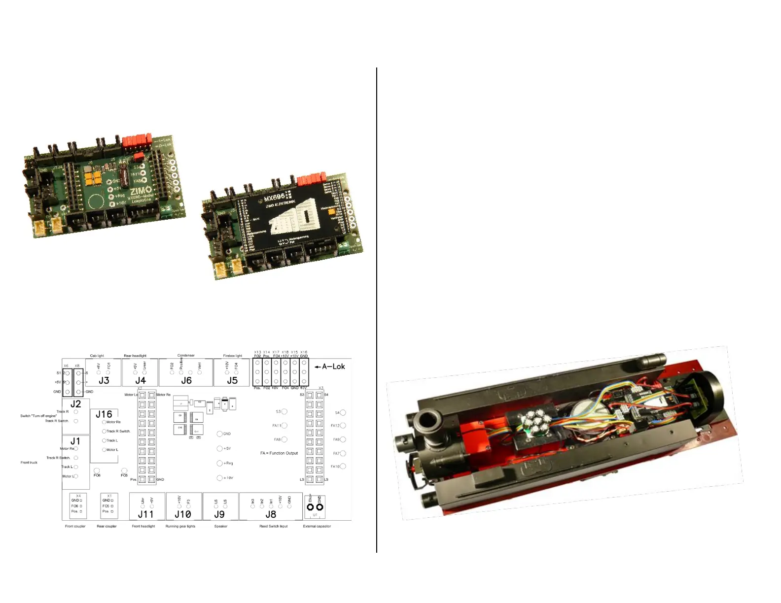 inserted decoder MX696S). The Zimo loco board has the same connectors (but no connection