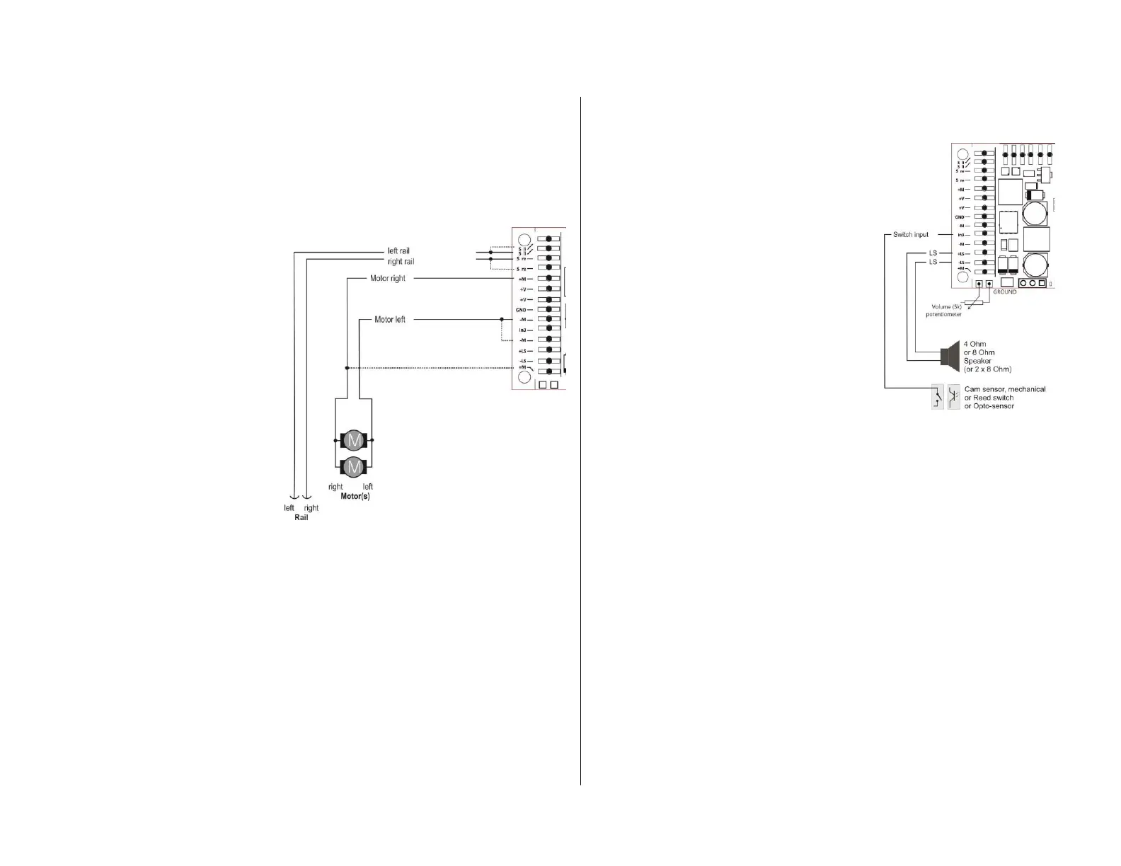 The connection pins for tracks and motor are available twice on the decoder, to enable send-