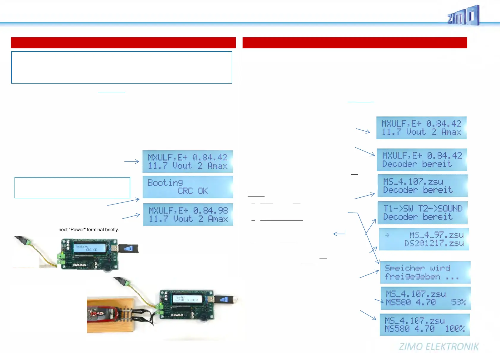 ZIMO MXULF - Self-Update of the MXULF or MXULFA; Decoder Software and Sound from USB Stick
