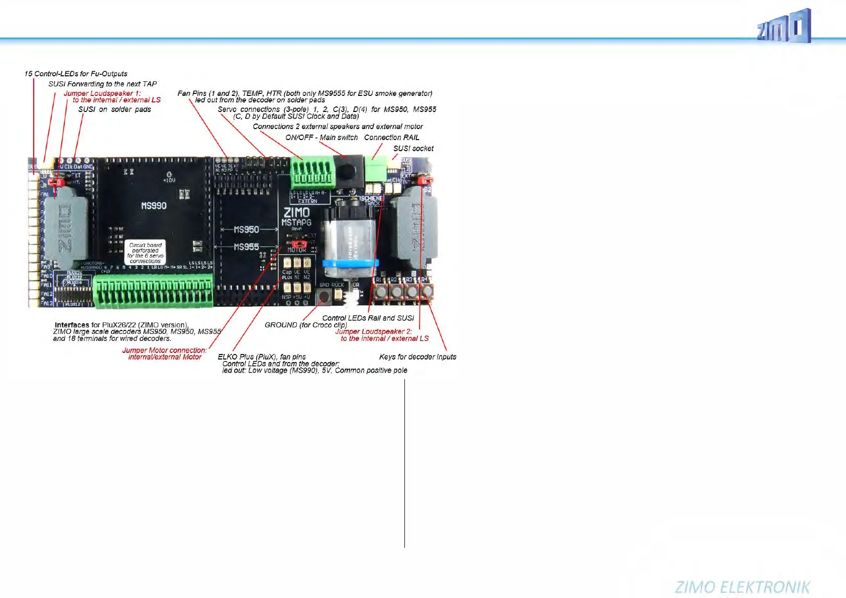 MSTAPG with attached large scale railroad sound decoder MS990 (ZIMO interface for