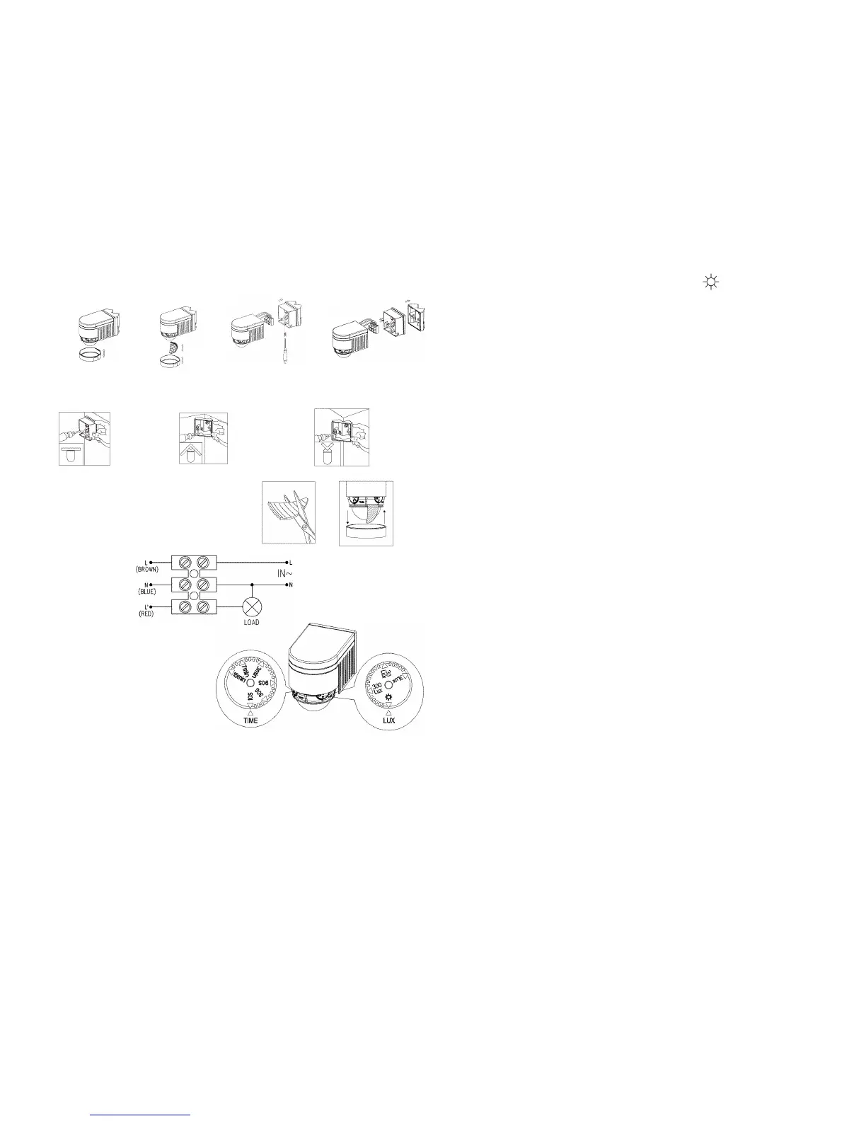 Note: when testing in daylight, please turn LUX knob to (sun) position, otherwise