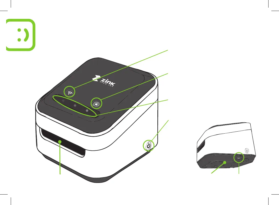 ZINK hAppy - Get to Know Your ZINK hAppy; Printer Controls and Ports Identification