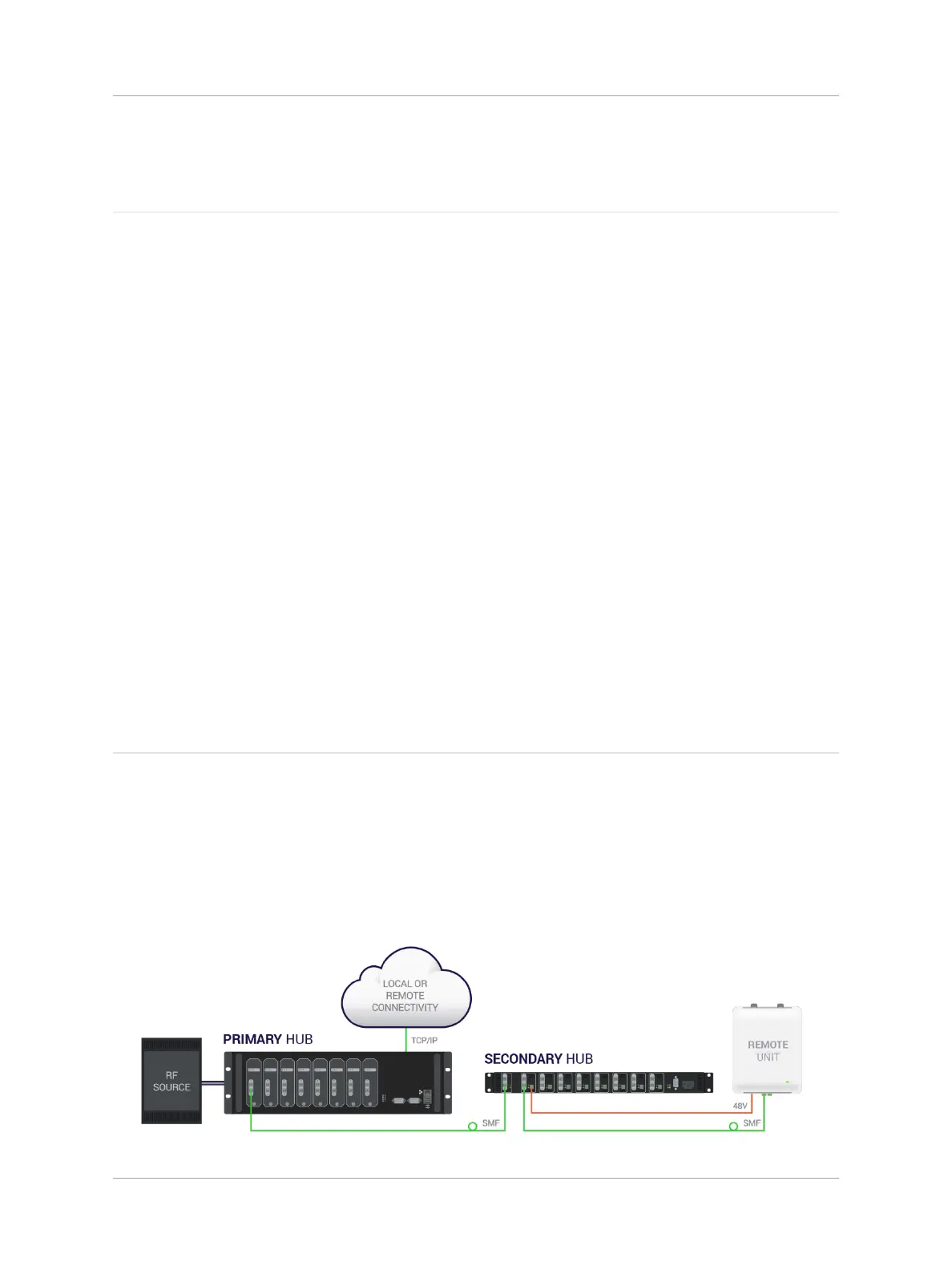 directly or indirectly. The Primary Hub converts these RF signal inputs to optical and connects via