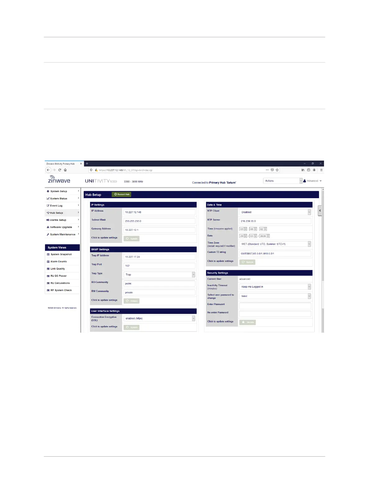 In the Security Settings section of the Hub Setup page an “advanced” user can change the password