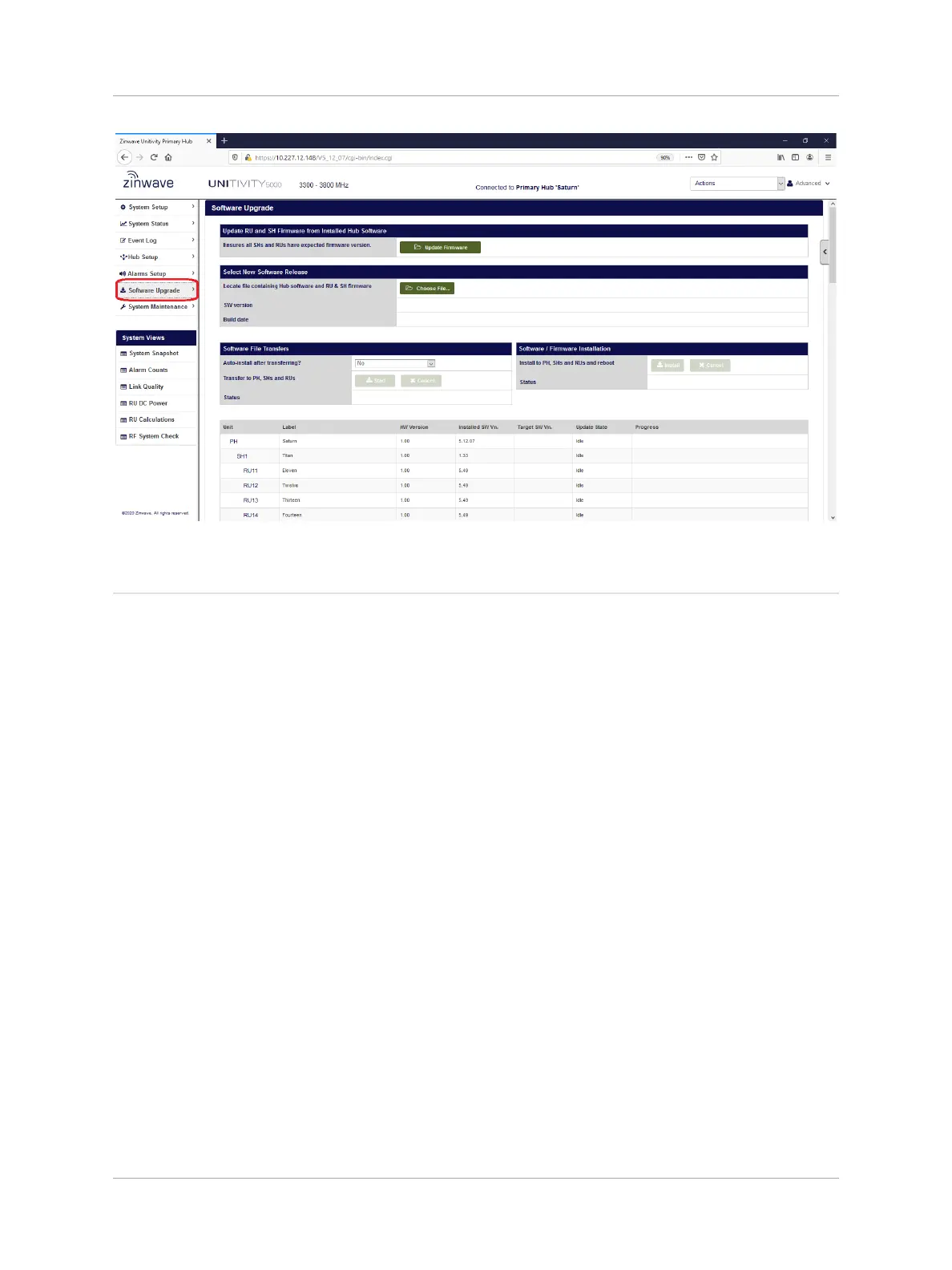 Once all required Hub and Remote Unit transfers have reached 100%, software / firmware installation