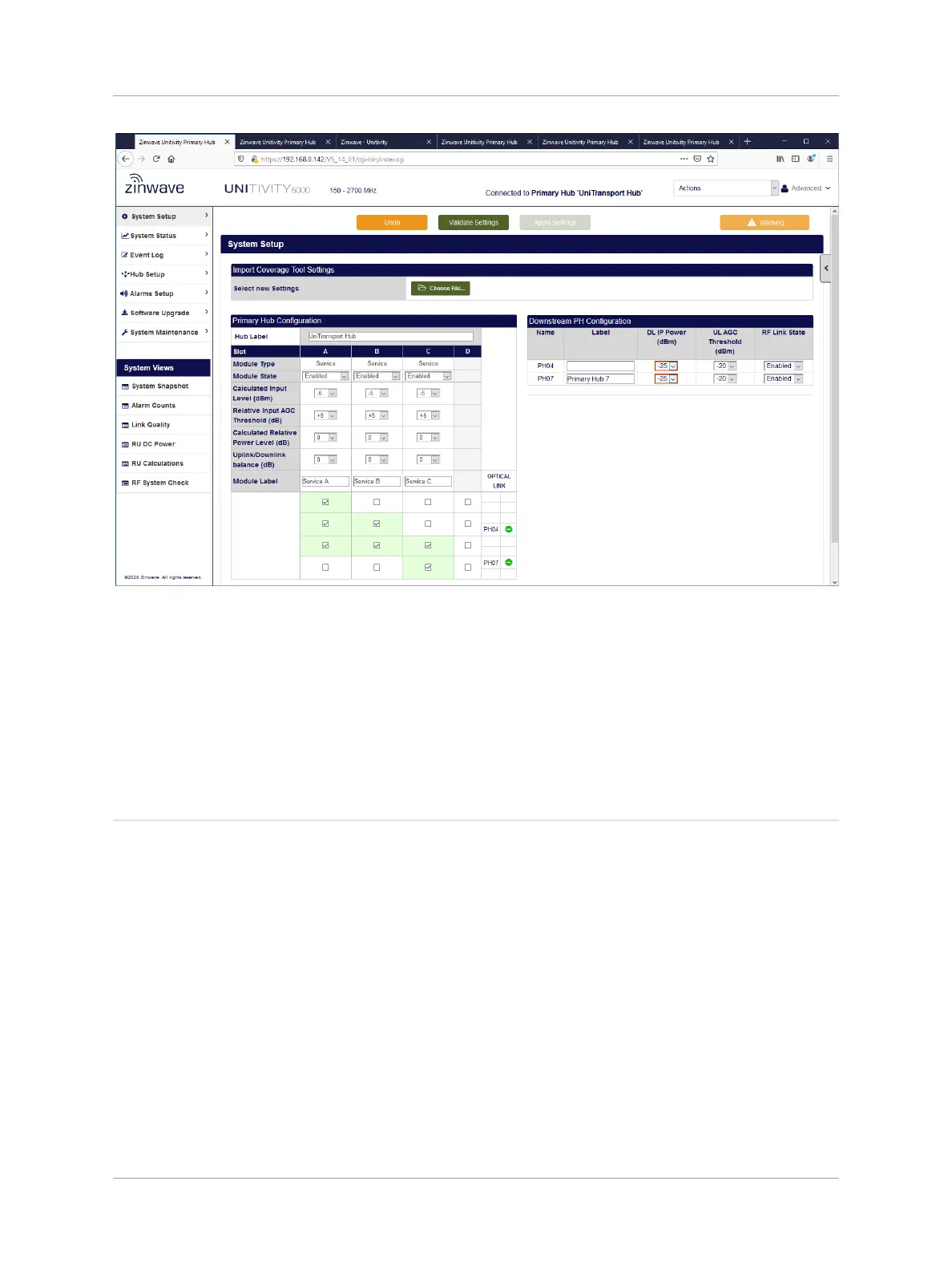 feed them in the UniTransport hub. Zinwave recommends that you set the Calculated Input Level