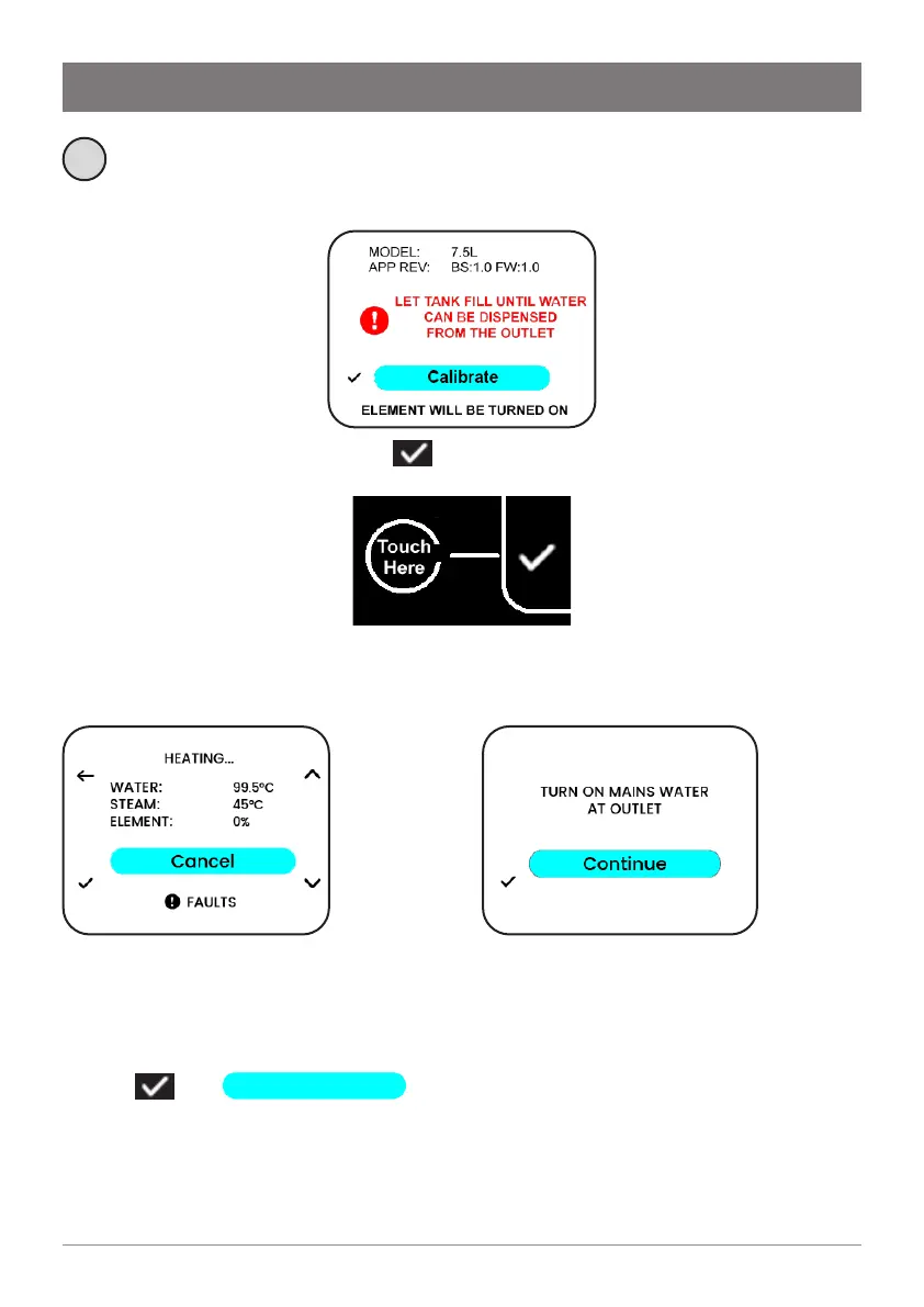 The tank will fill and heat. Allow 15-30 minutes for the water to reach boiling set