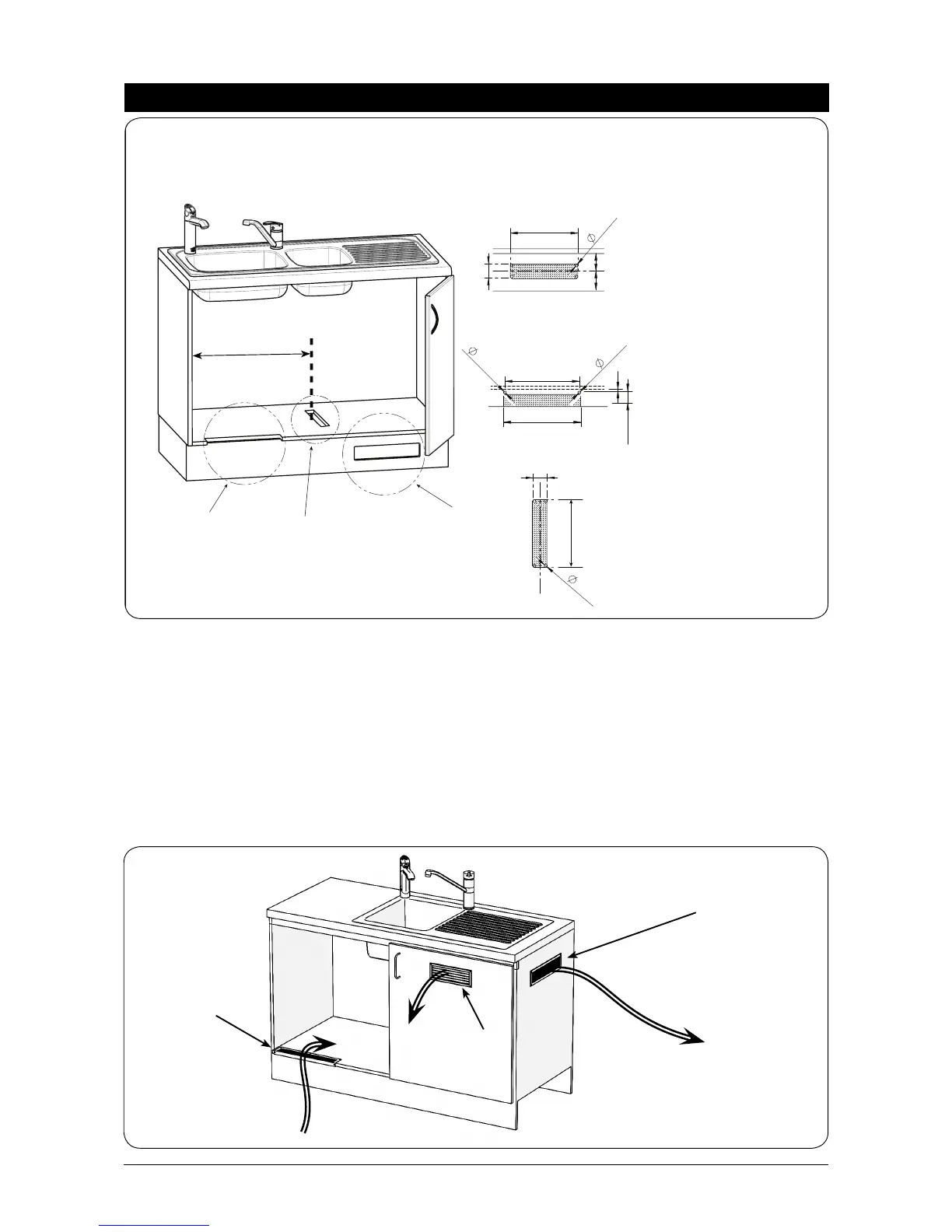 Note: The vent kit has to be installed in a way that allows air to be drawn in from the bottom of the cupboard