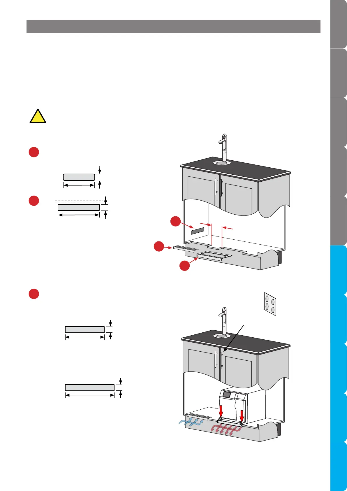 • The inlet vent is positioned in the cupboard side, door or floor.