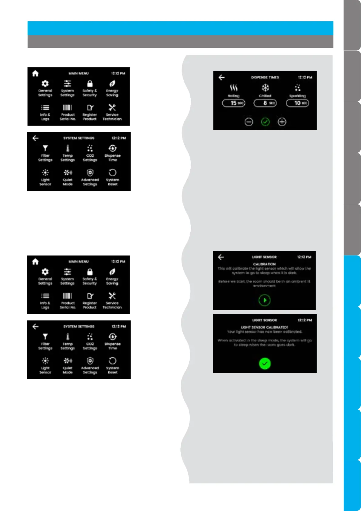 • Set the “bottle-fill” dispense time for each