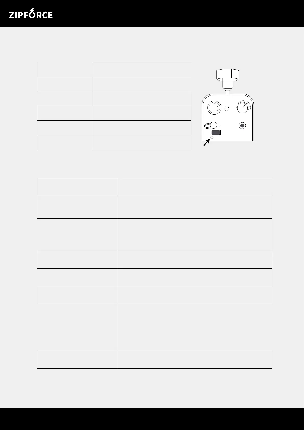 Indikatorn blinkar rött Zipforce är inte laddad. Ladda enheten. Lysdioden på laddaren ska lysa grönt när