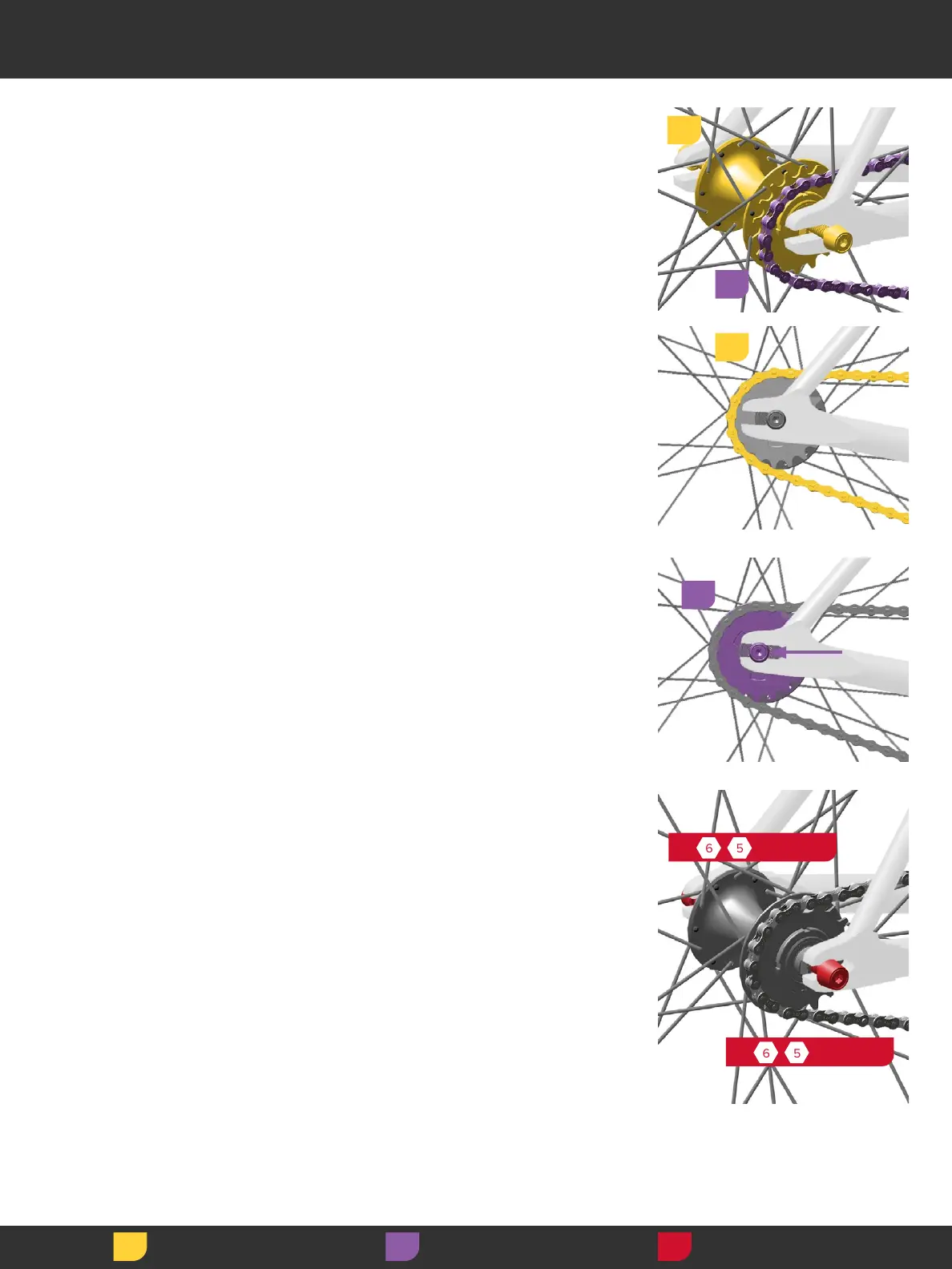 Rear Track Wheel Installation Montering af baghjul til banecykel Montarea roţii din spate