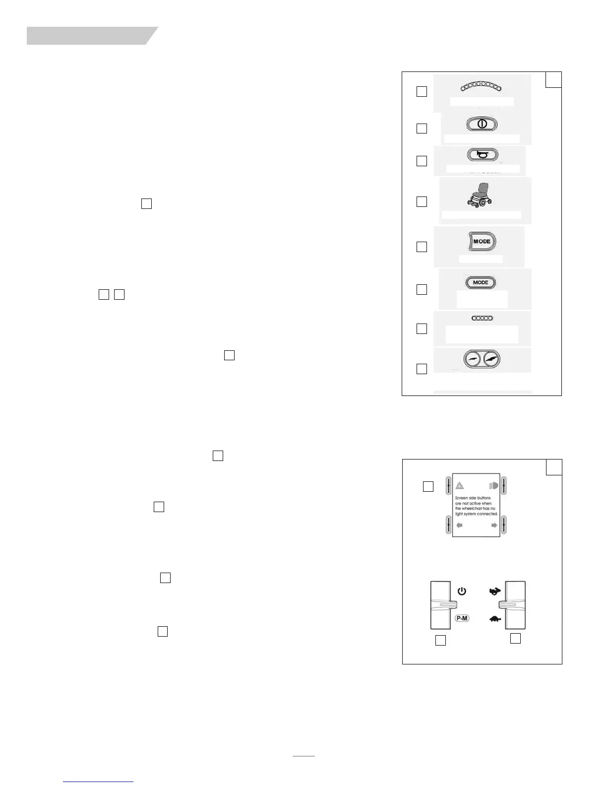 qui active à son tour l’alimentation des moteurs du fauteuil roulant. N’utilisez pas le bouton