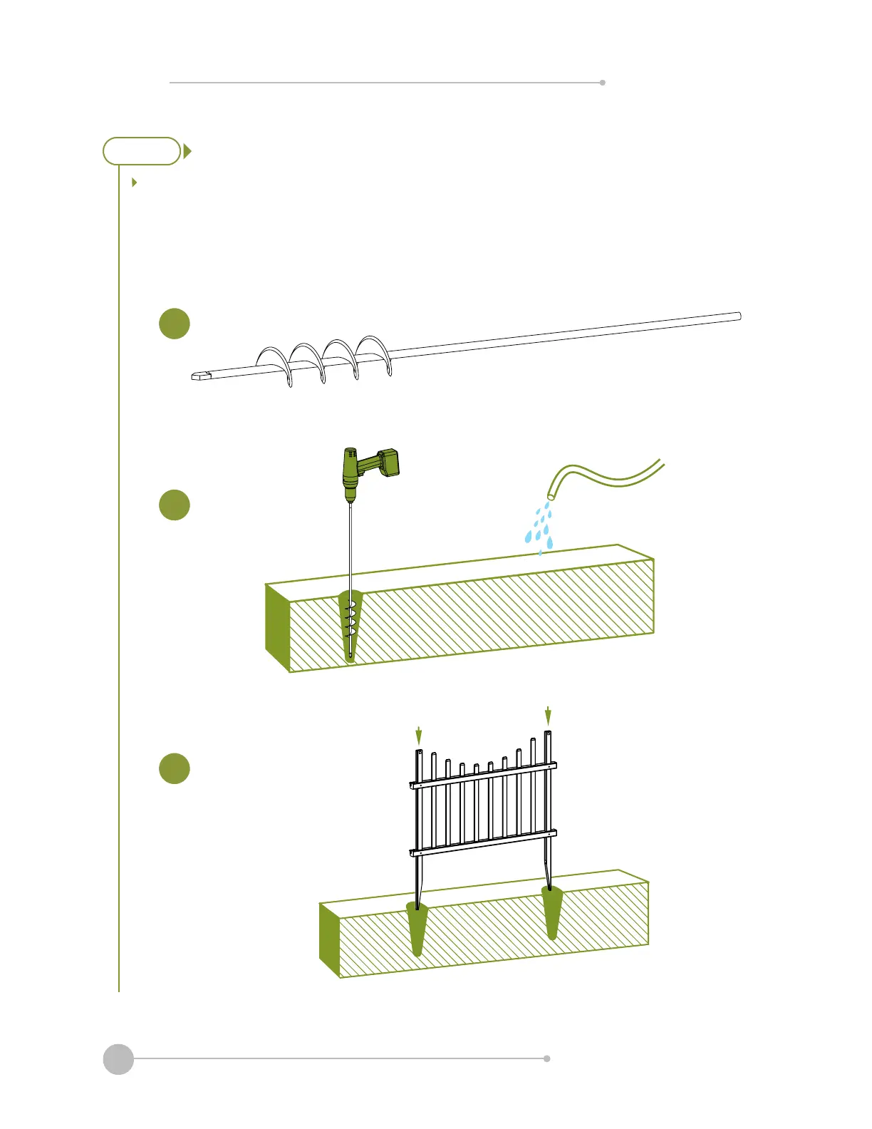 3. Push the fence posts into the holes.
