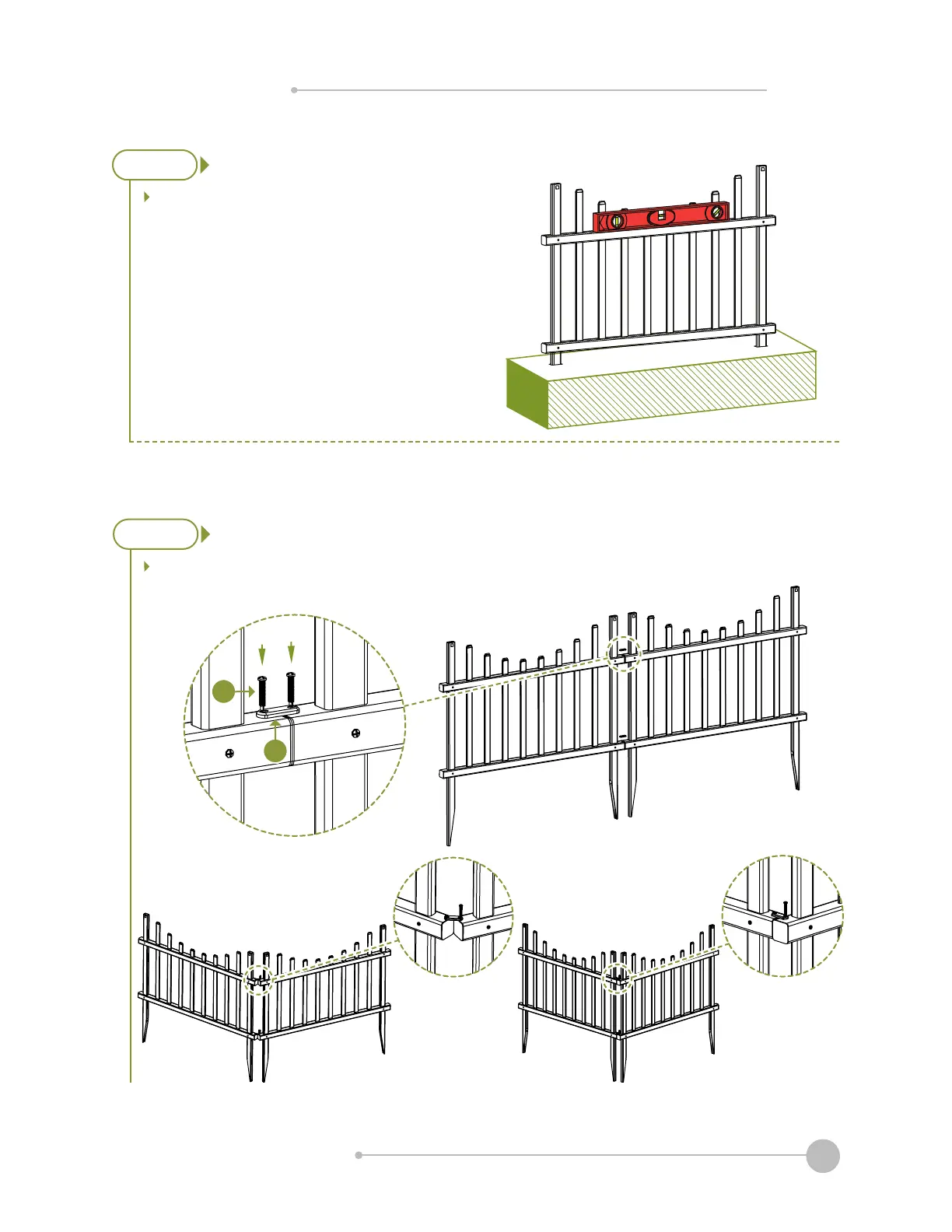Fasten the fence panels together using (2) Joiner Clips (G)