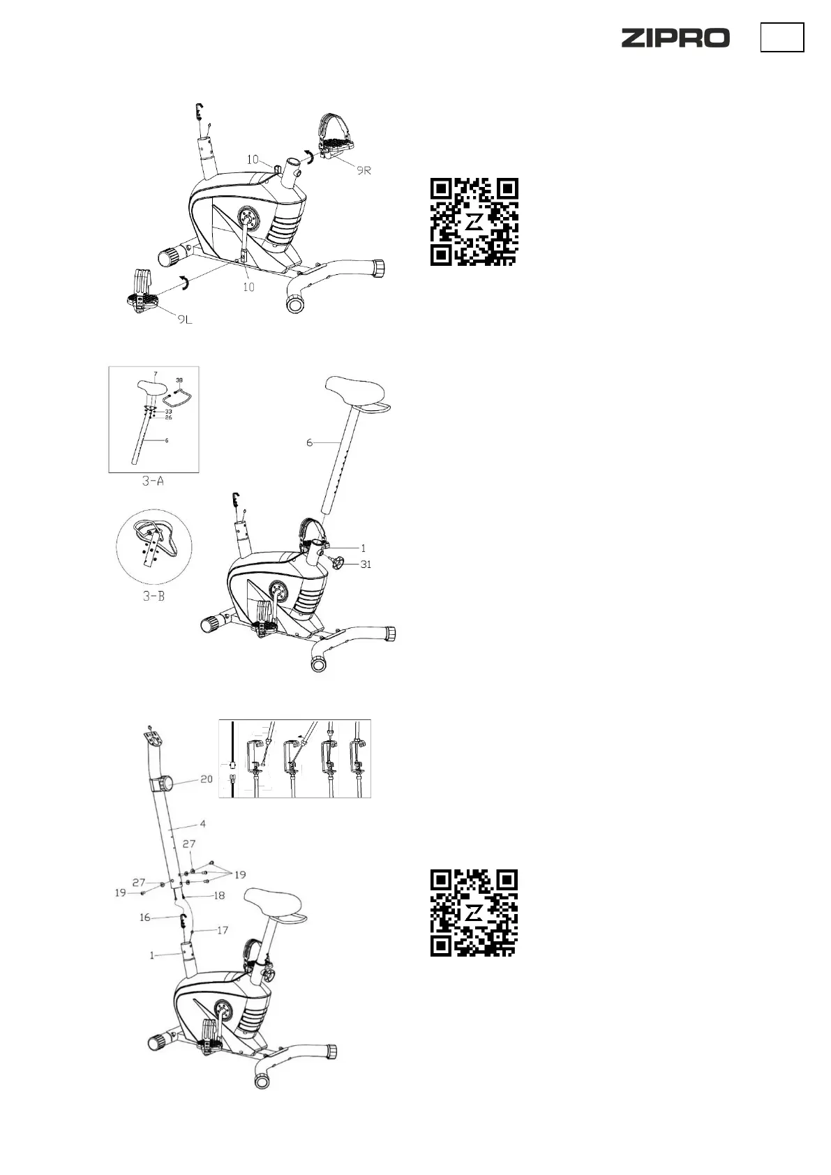 Screw the left and right pedal (9L/R) to the crank (10). Screw the right