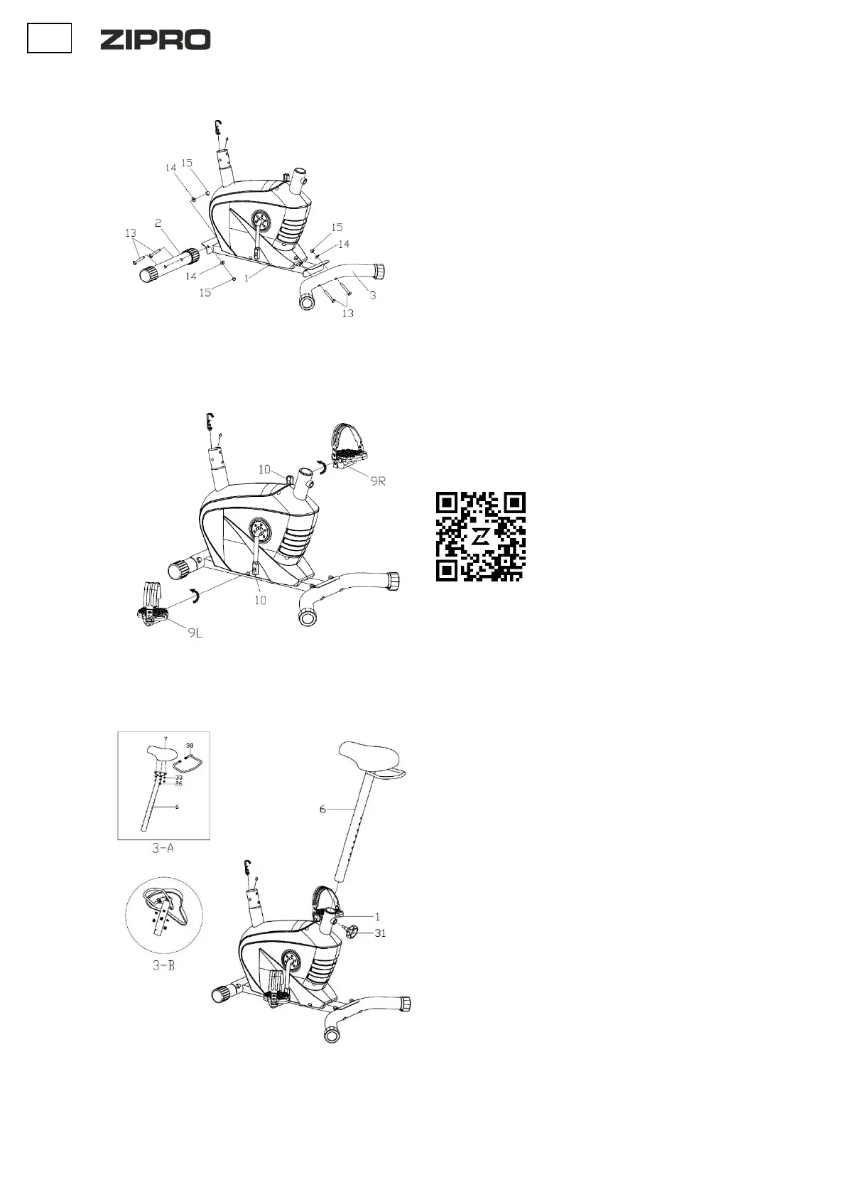Schrauben Sie das rechte und linke Pedal (9L/R) an die Kurbel (10).