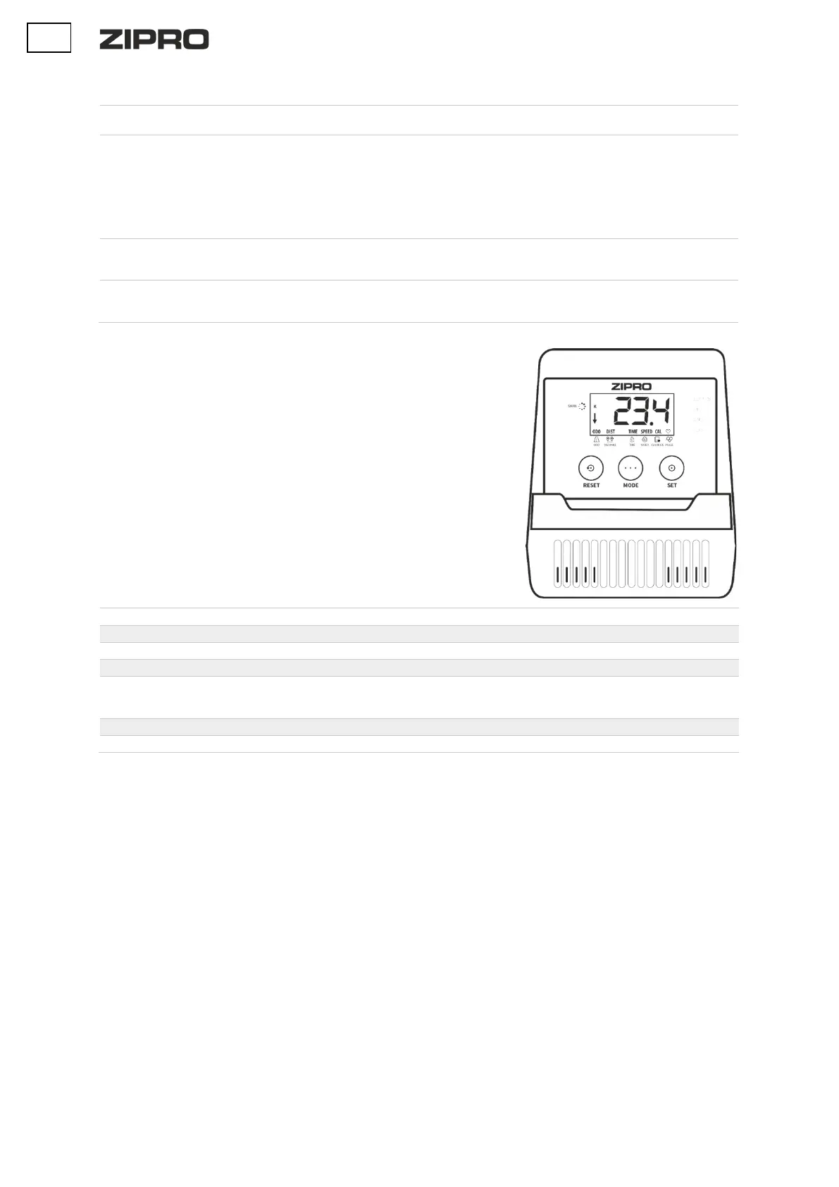 RESET - служит для мгновенного сброса времени, расстояния и калорий.