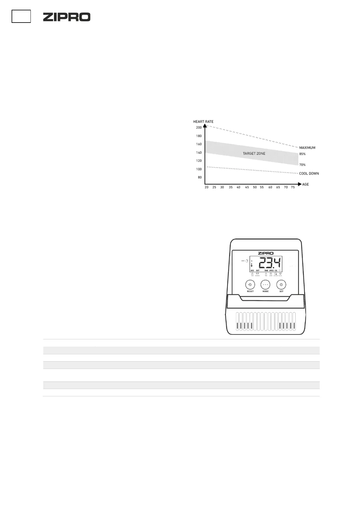 RESET - je určené na okamžité resetovanie času, vzdialenosti a kalórií.