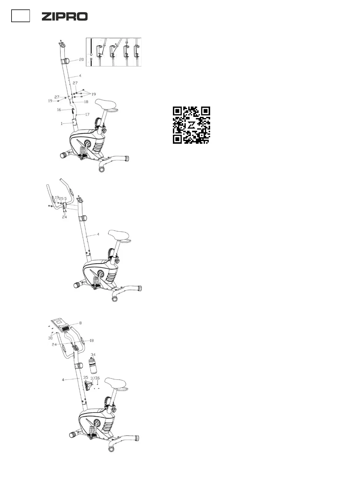 Tedd át a pulzusmérő kábelt (24) a kormányszár (4) nyílásán, majd húzd fel a