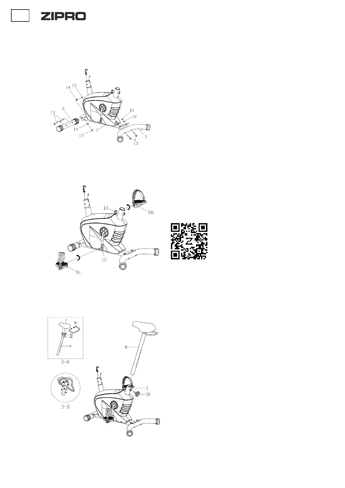 Монтирайте десния и левия педал (9L/R) към курбелите (10). Гайката на