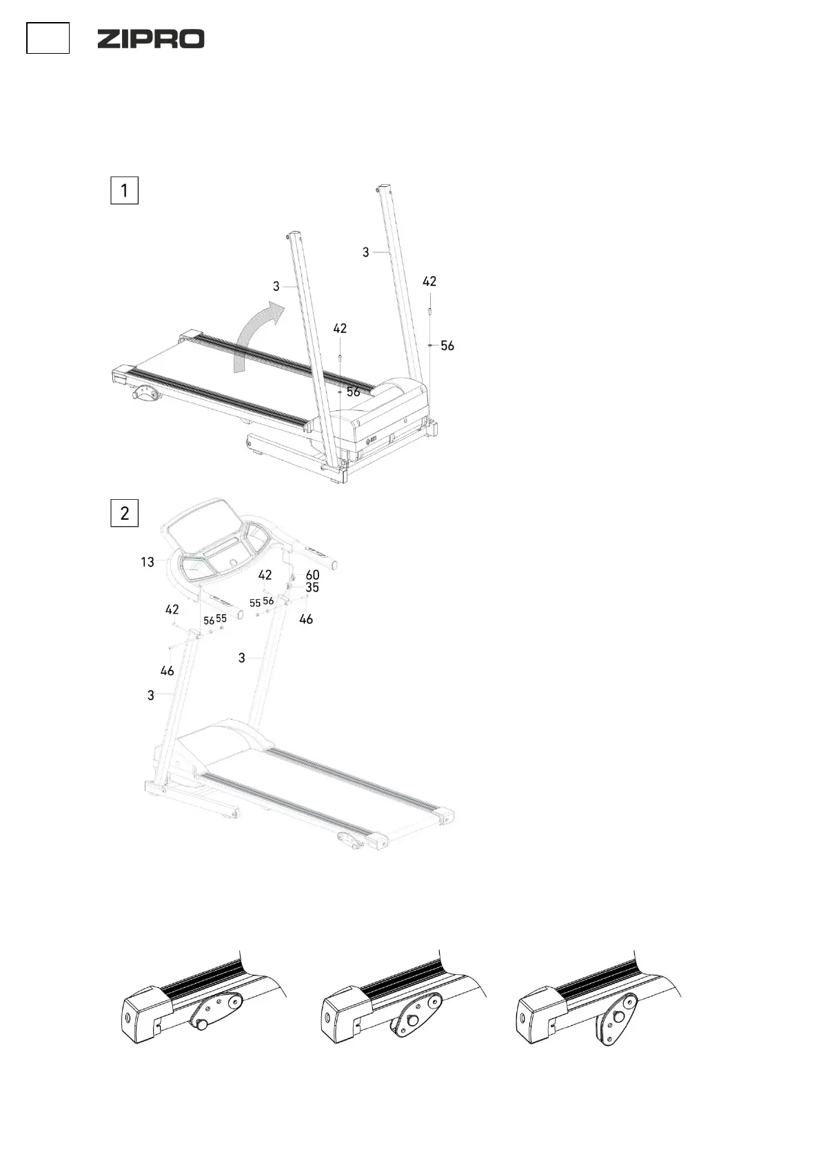 Banda de alergat este dotată cu ajustarea unghiului de înclinare. Schimbând poziţia blocadei regulatorului de înclinare puteţi seta una dintre cele 3