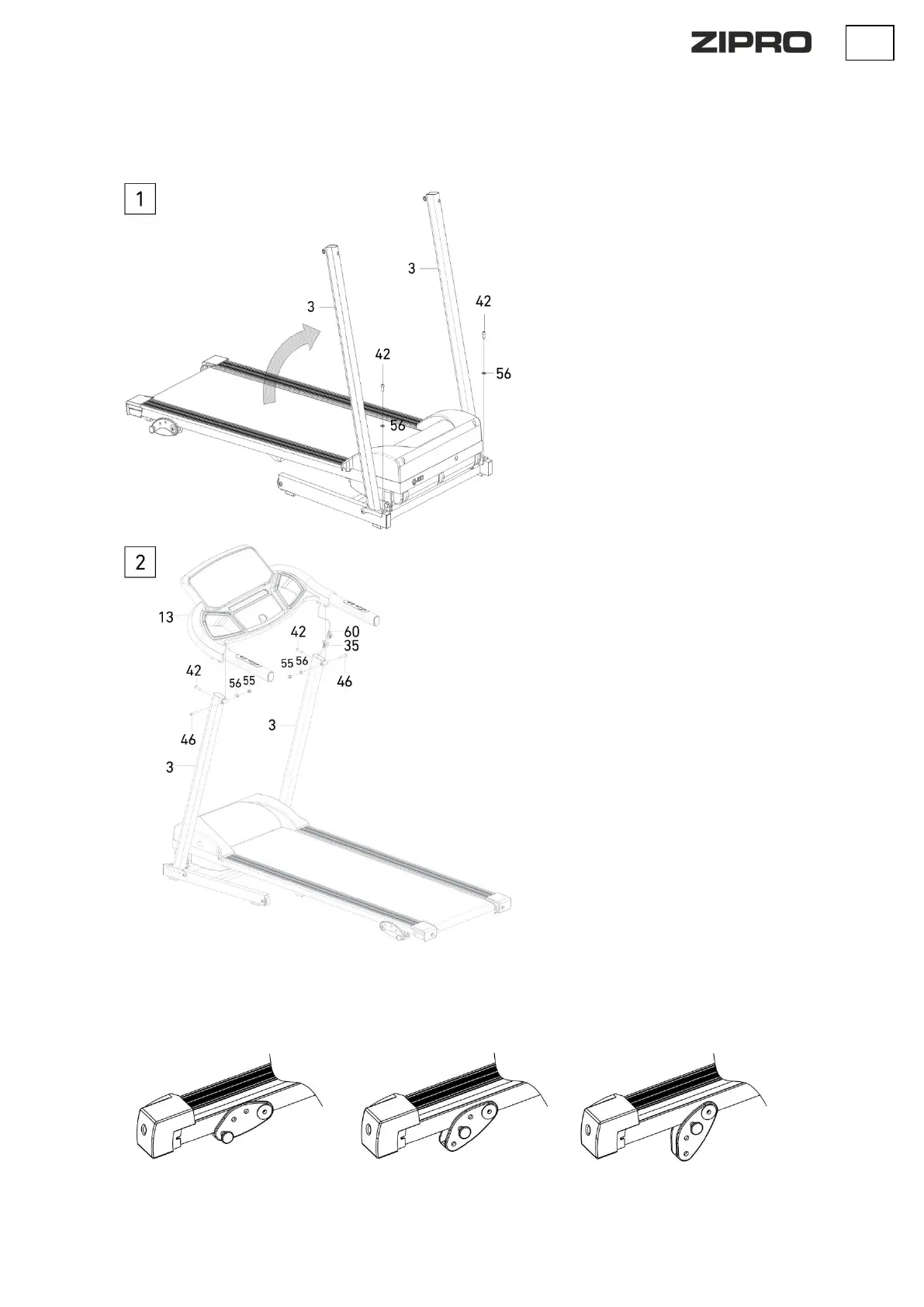 Kairį ir dešinį bėgimo takelio stulpelį (3) pastatykite taip,