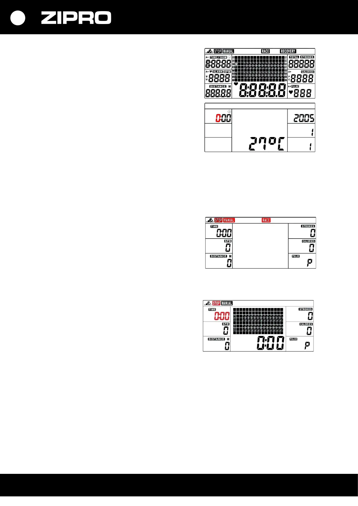 (STROKES), Kalorien (CALORIES), Puls (PULSE).