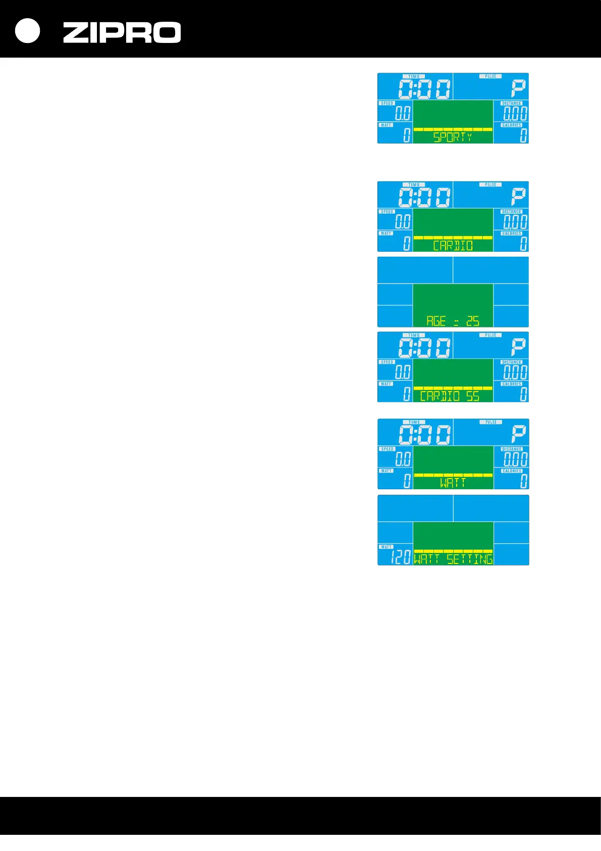 • Mygtukais UP ir DOWN nustatykite treniruotės laiką.