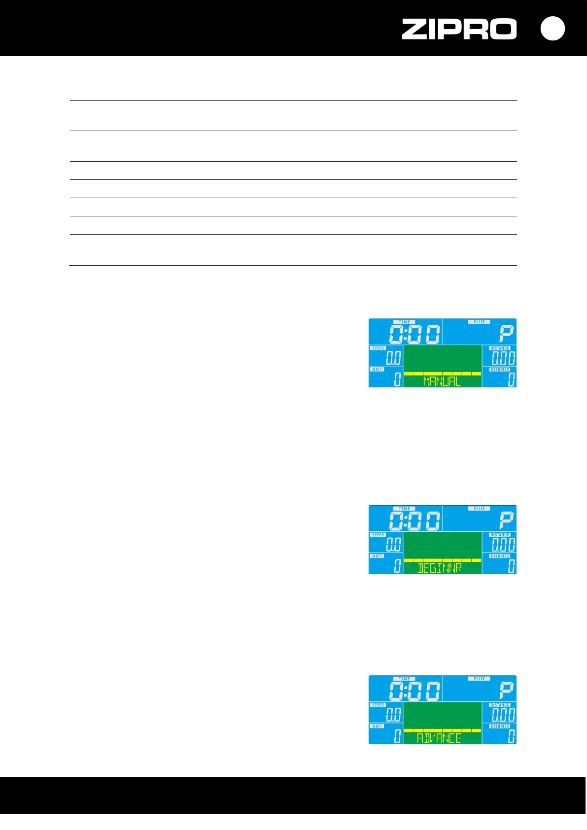 Sie können das Trainingsprogramm mit den Tasten UP und DOWN auswählen.