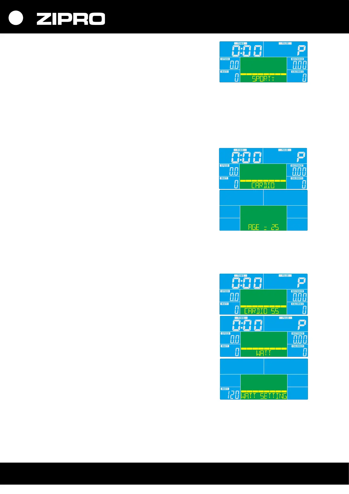 DOWN. Sélectionnez CARDIO et appuyez sur la touche