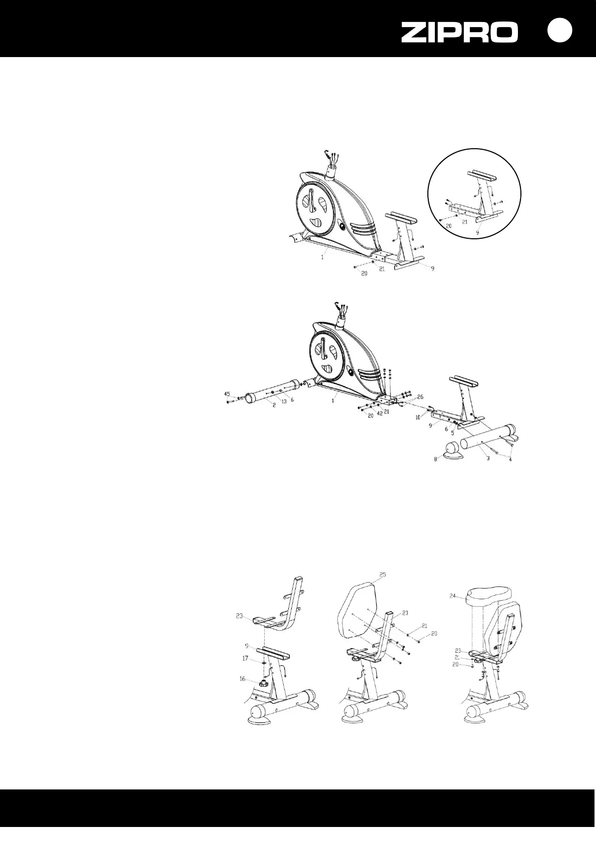 главна рама (1) и задната главна рама (2) с шестостенните болтове (20), пружинните шайби (42) и