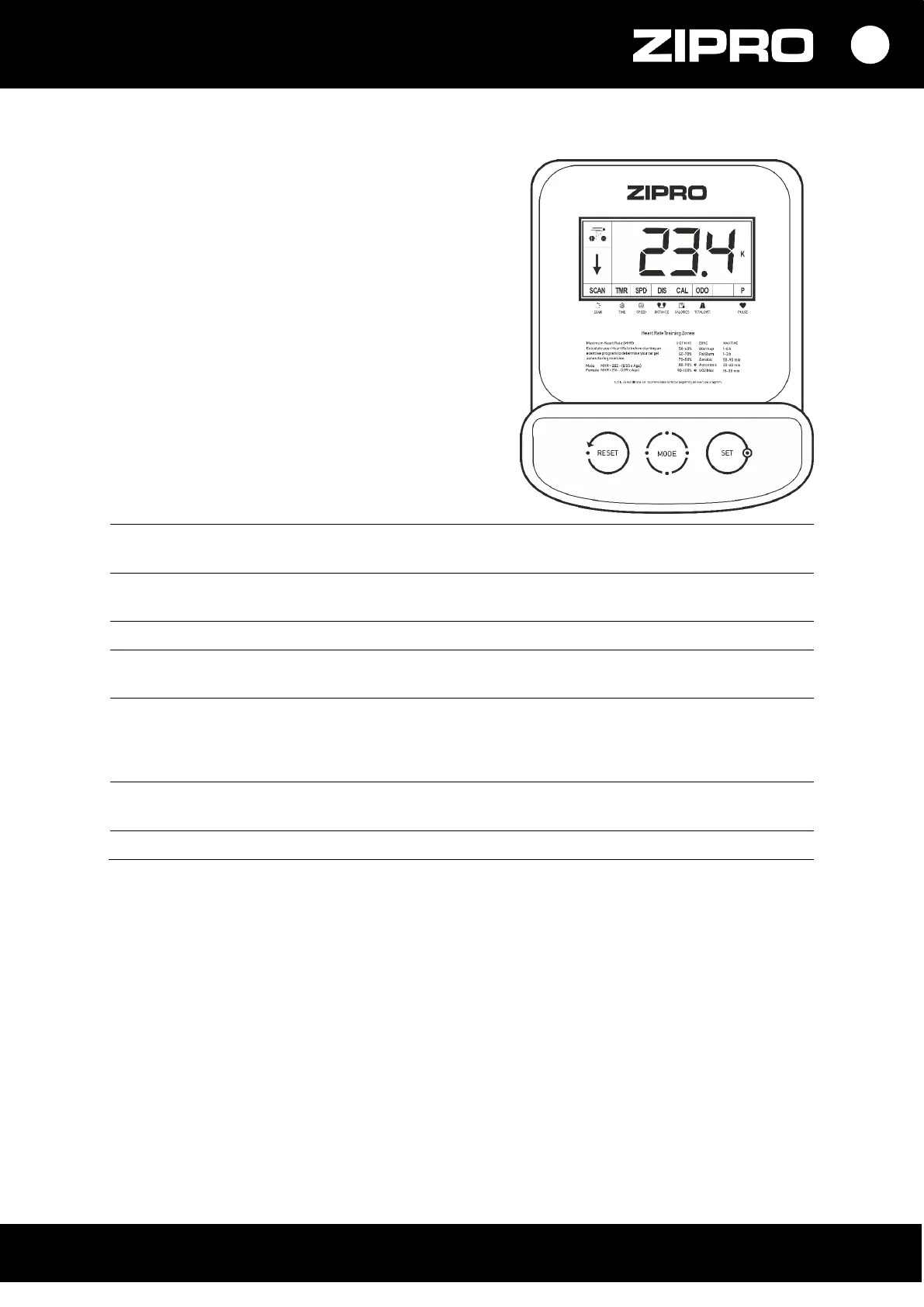 • Apăsând MODE, setați pe monitor parametrul pe care doriți să îl atingeți în timpul antrenamentului: