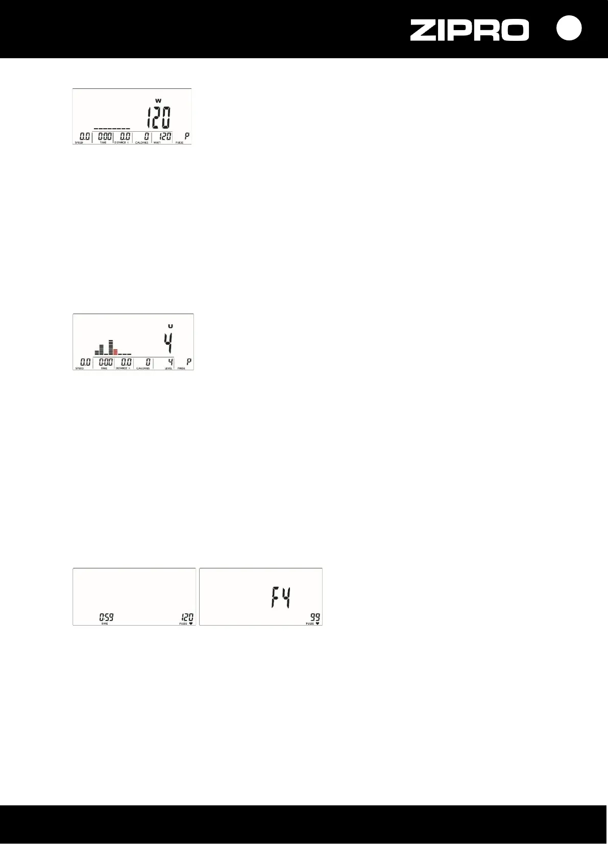 Treniruotės metu mygtukais UP ir DOWN galima keisti WATT lygį.