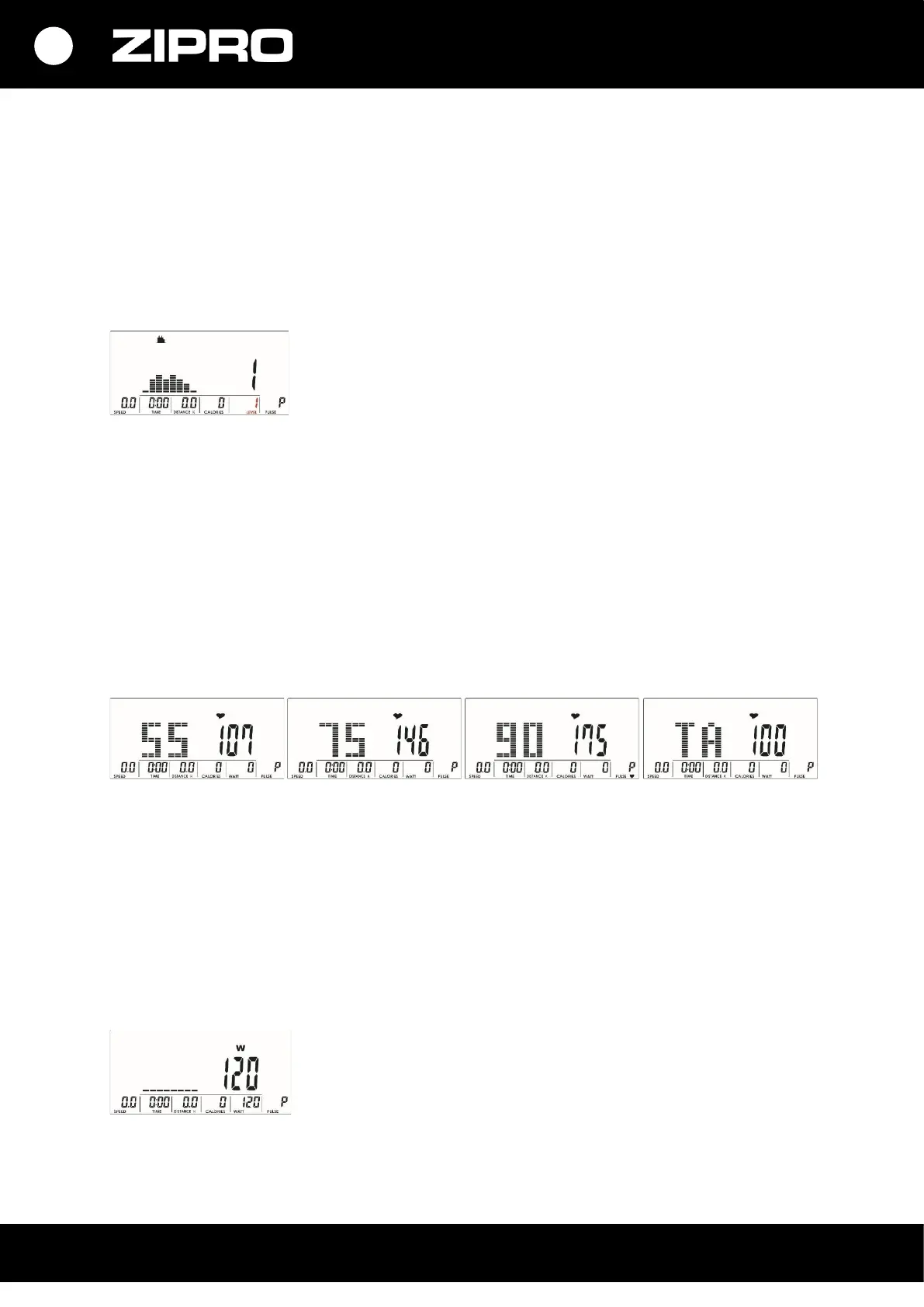 • Použijte tlačítko UP nebo DOWN, pro změnu stupně zátěže (LEVEL). Výchozí nastavení stupně