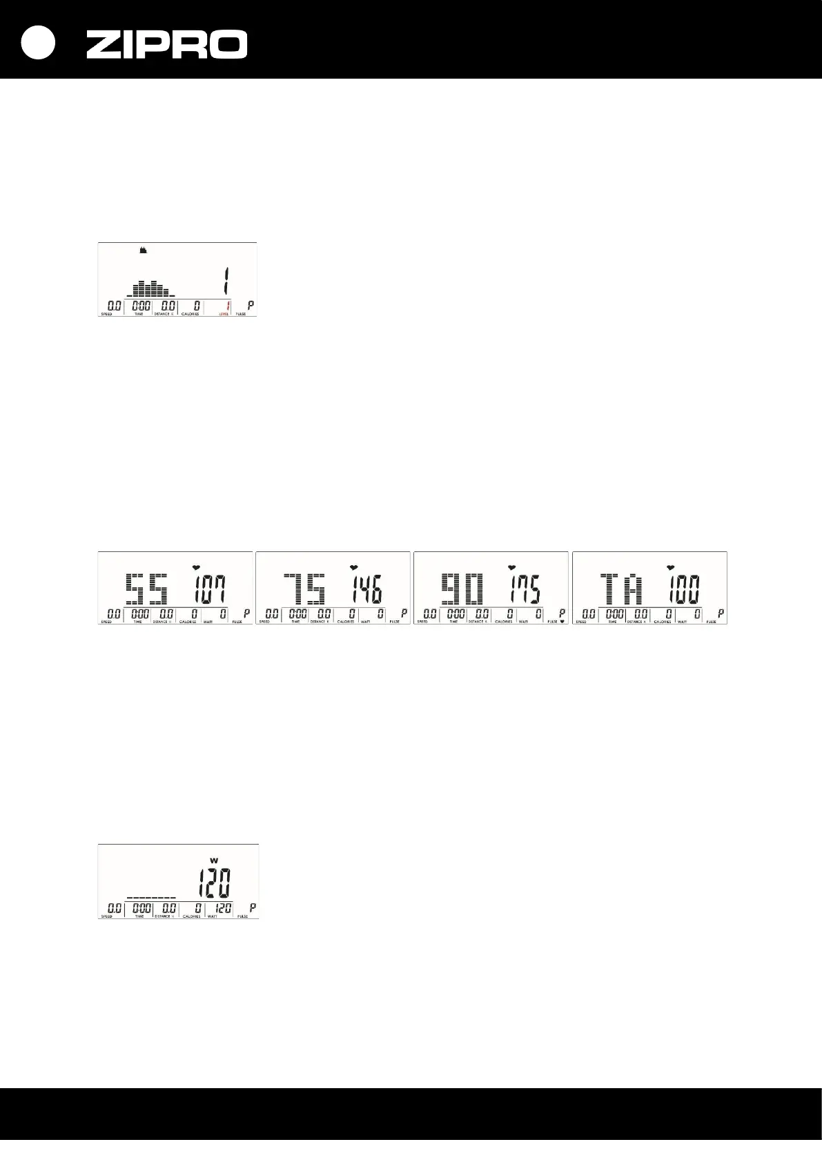 Počas tréningu môžete meniť úroveň intenzity (LEVEL) stláčaním tlačidiel UP a DOWN.