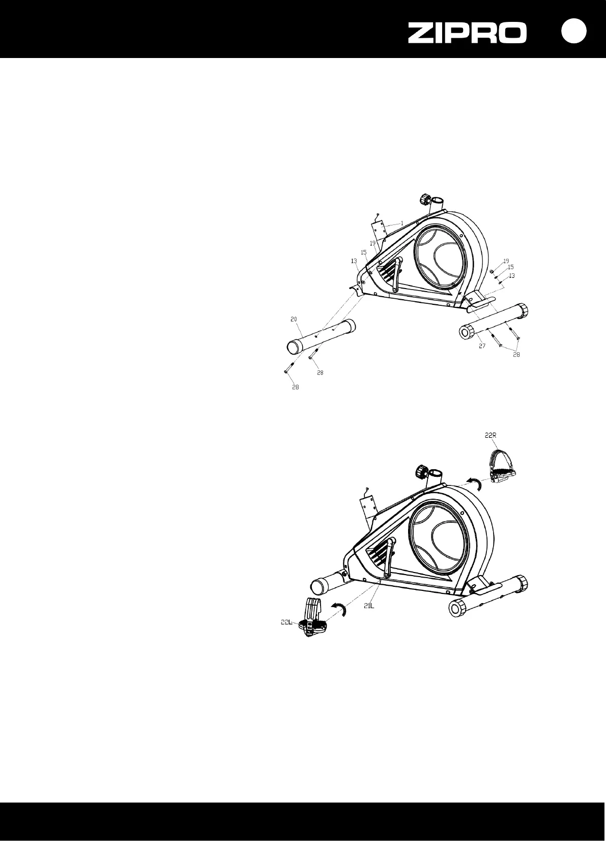 Csavard fel a jobb és a bal pedált (22L/R) a