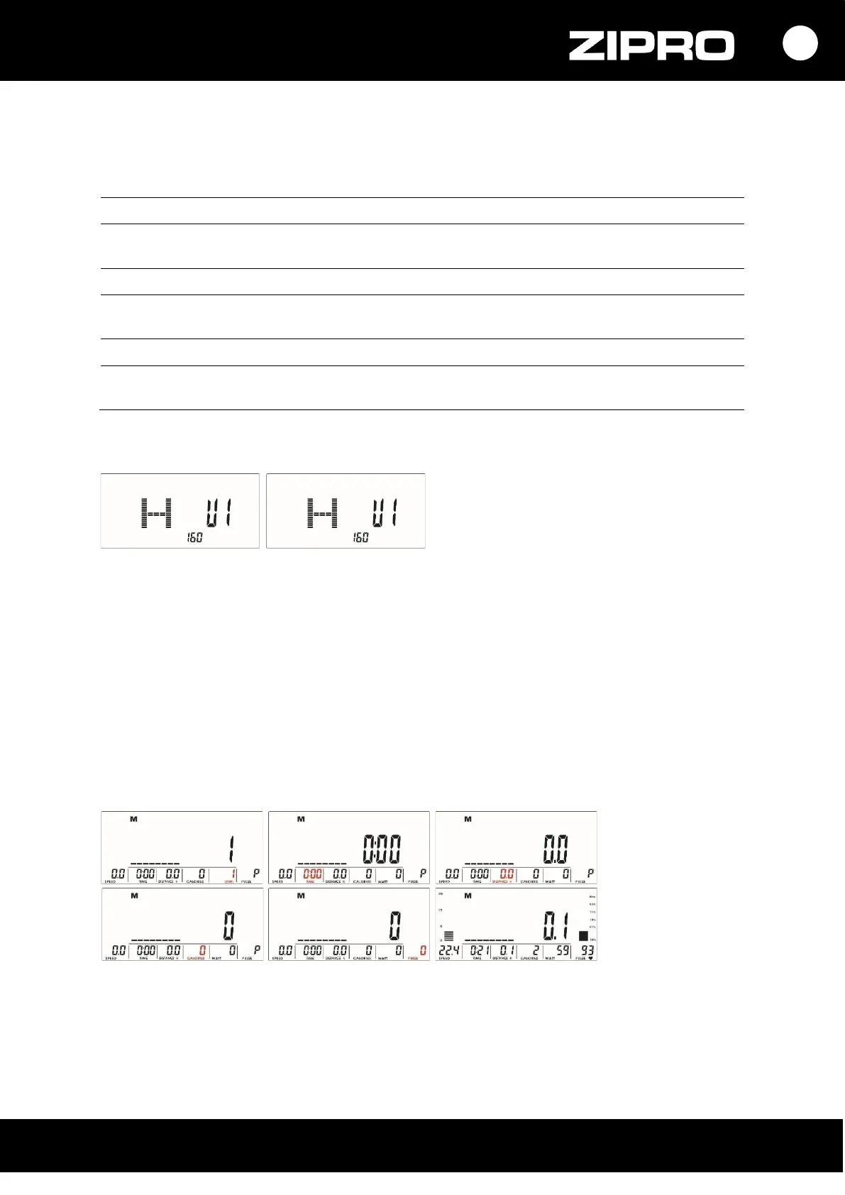 Módosítások sorrendje: M (Manual) →P (Program 1-12) → ♥ (H.R.C) → W (WATTS) → U (User).