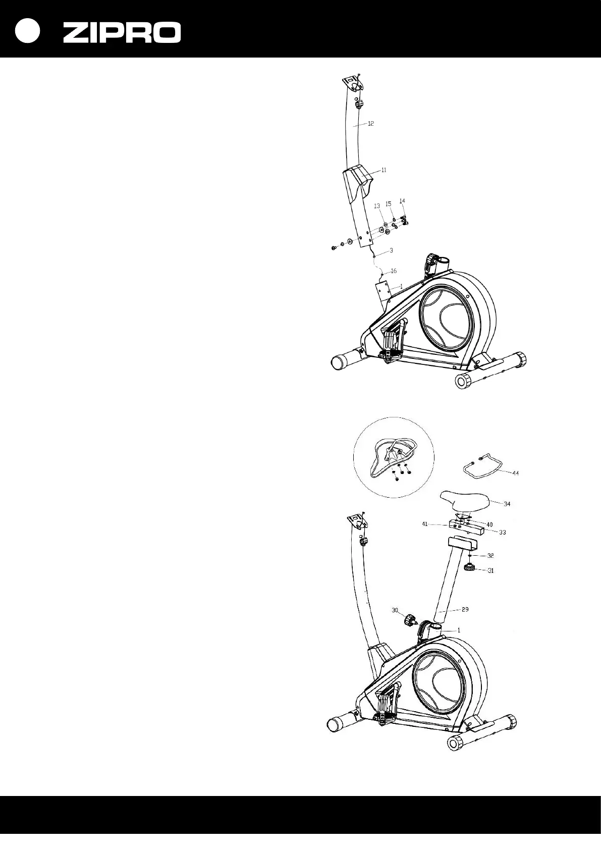 Монтирайте седалката (34) и дръжката за